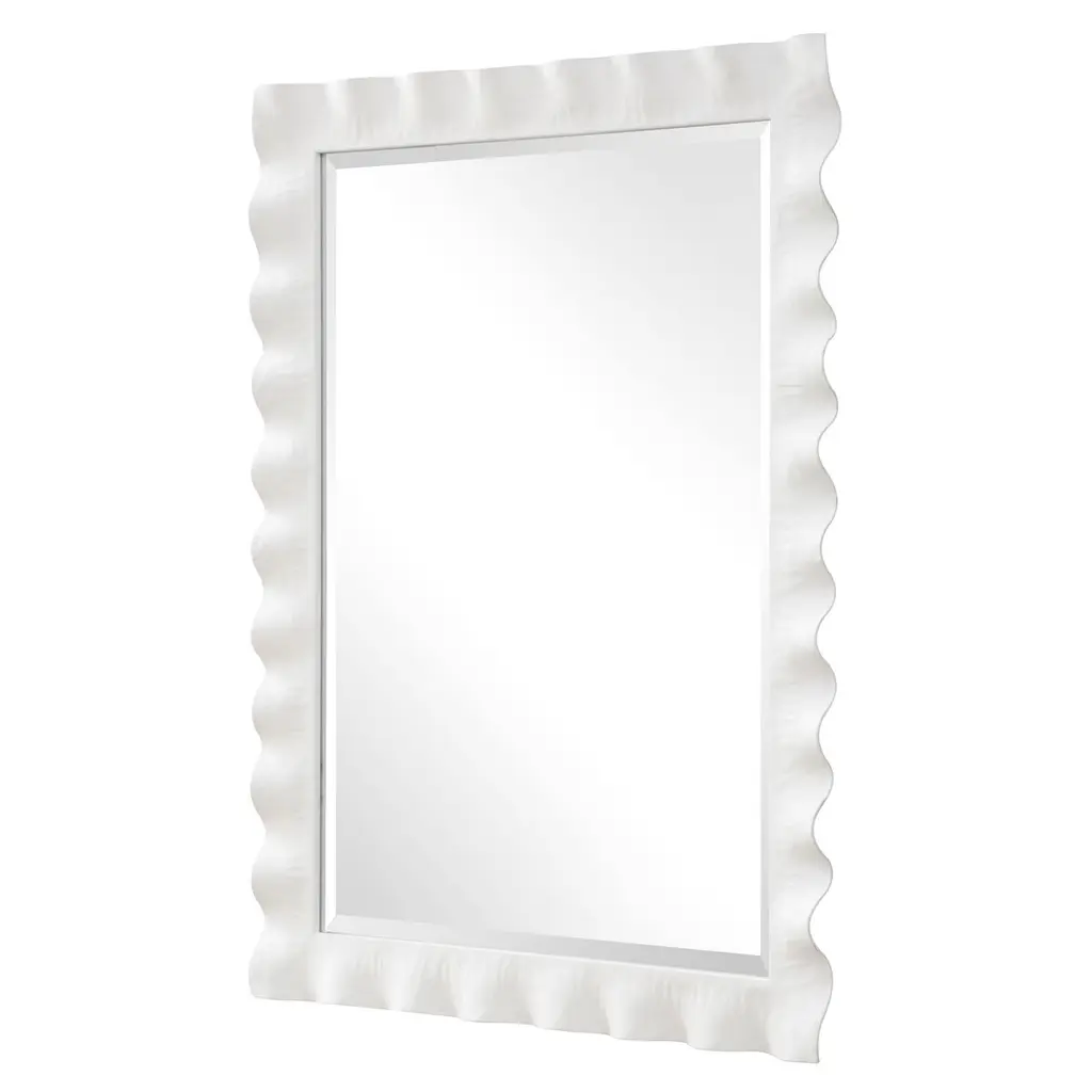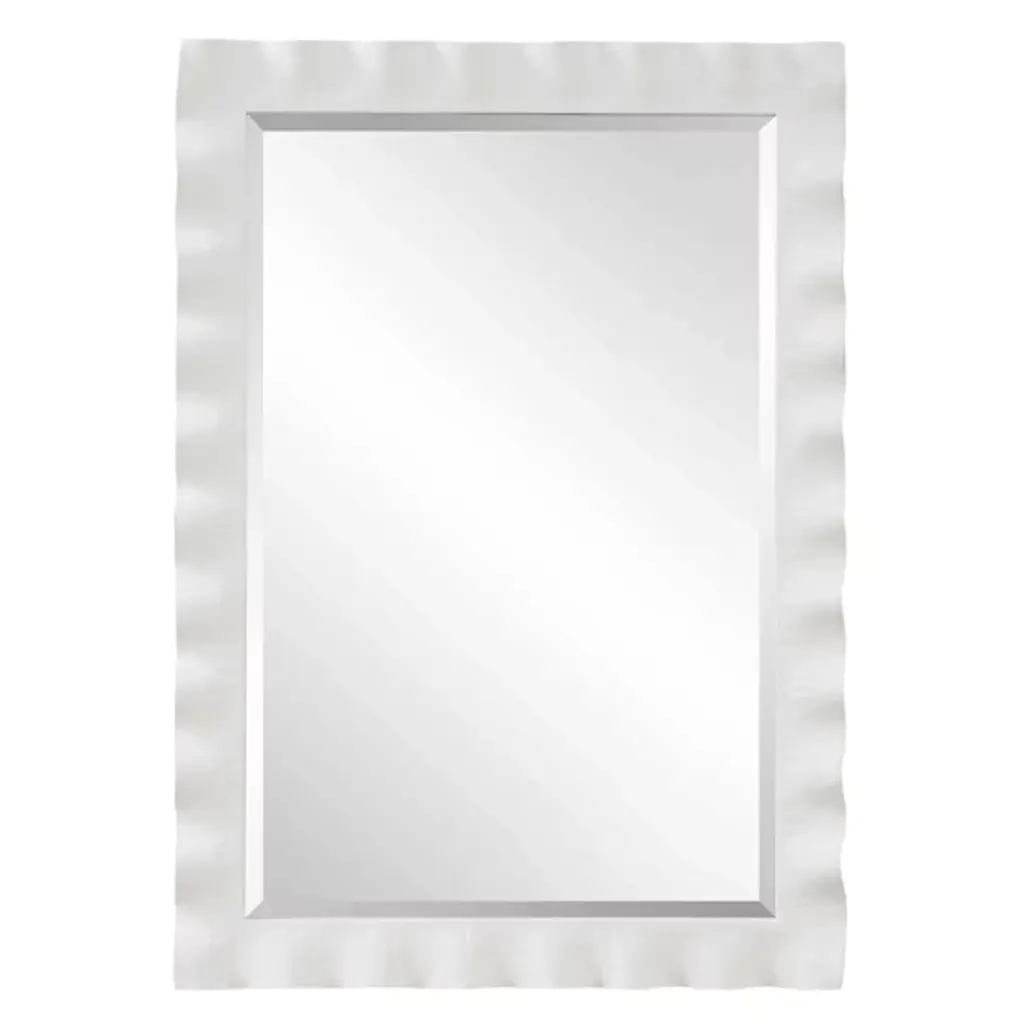 This exquisite mirror is a testament to the art of craftsmanship, with its hand-forged metal frame that exudes elegance and sophistication. The frame's organic, scalloped edge design adds a touch of romance, reminiscent of gentle Silvano caressing the shore. Its semi-gloss finish enhances the mirror's allure, capturing light in the most enchanting way. The generous 1-inch bevel further elevates its charm, creating a captivating play of reflections. Whether hung horizontally or vertically, this mirror becomes a centerpiece, inviting admiration and adding a timeless beauty to any space.