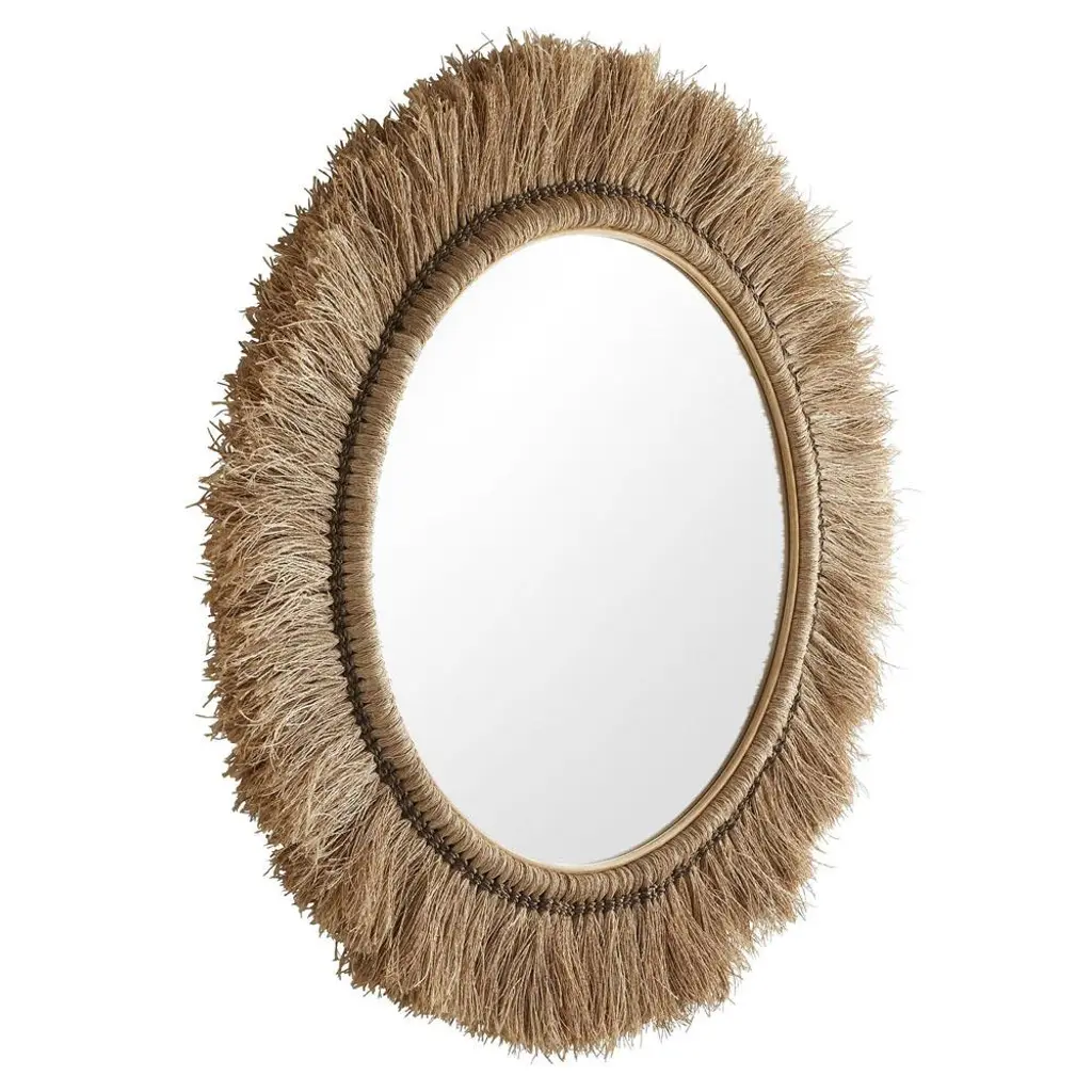 Kai Coastal Natural Abaca Wrapped Frame Round Wall Mounted Mirror