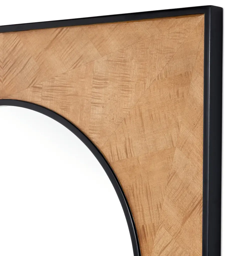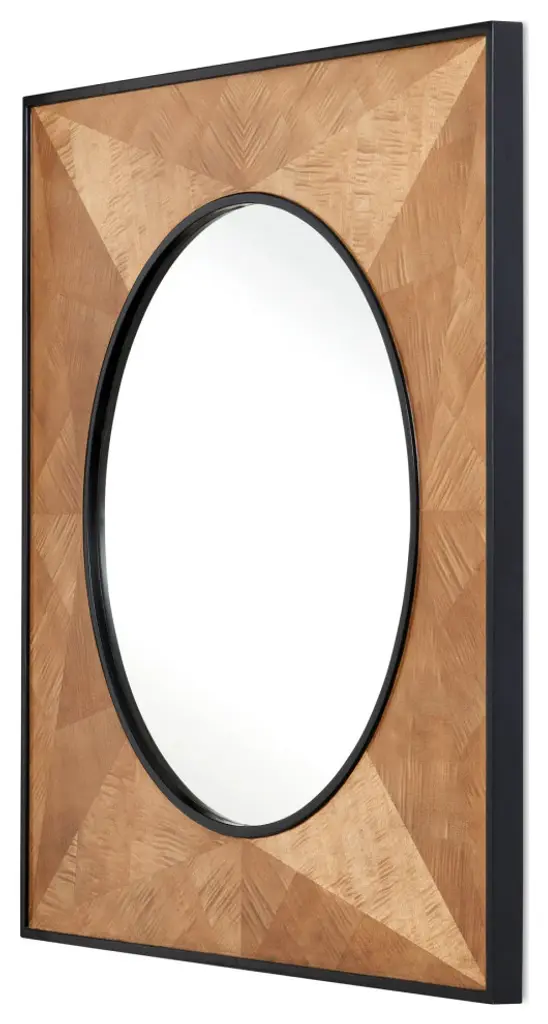 The Kallista Taupe Large Mirror has a sophisticated profile. Black mahogany trim surrounds the mirror and forms the outside edge of the frame into which sycamore veneers are set. The natural sheen of the veneer, placed in alternating directions, creates light and dark sections to increase the textural feel of the woodgrain on the mirror.