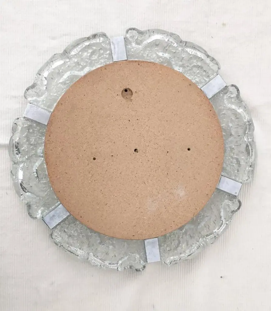 Heavy crystal ice glass elements mounted on a wooden plate, made in the 1960s in Vienna by Kalmar.