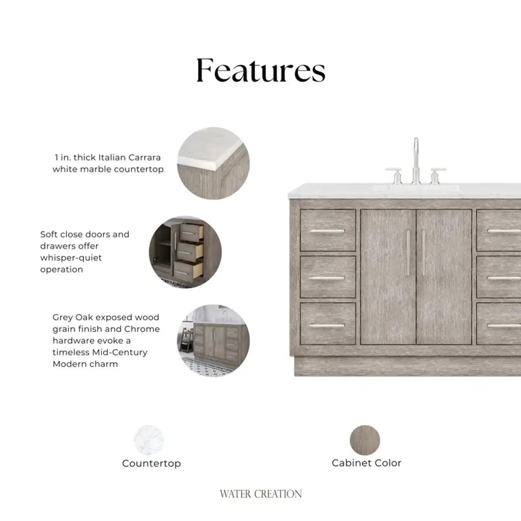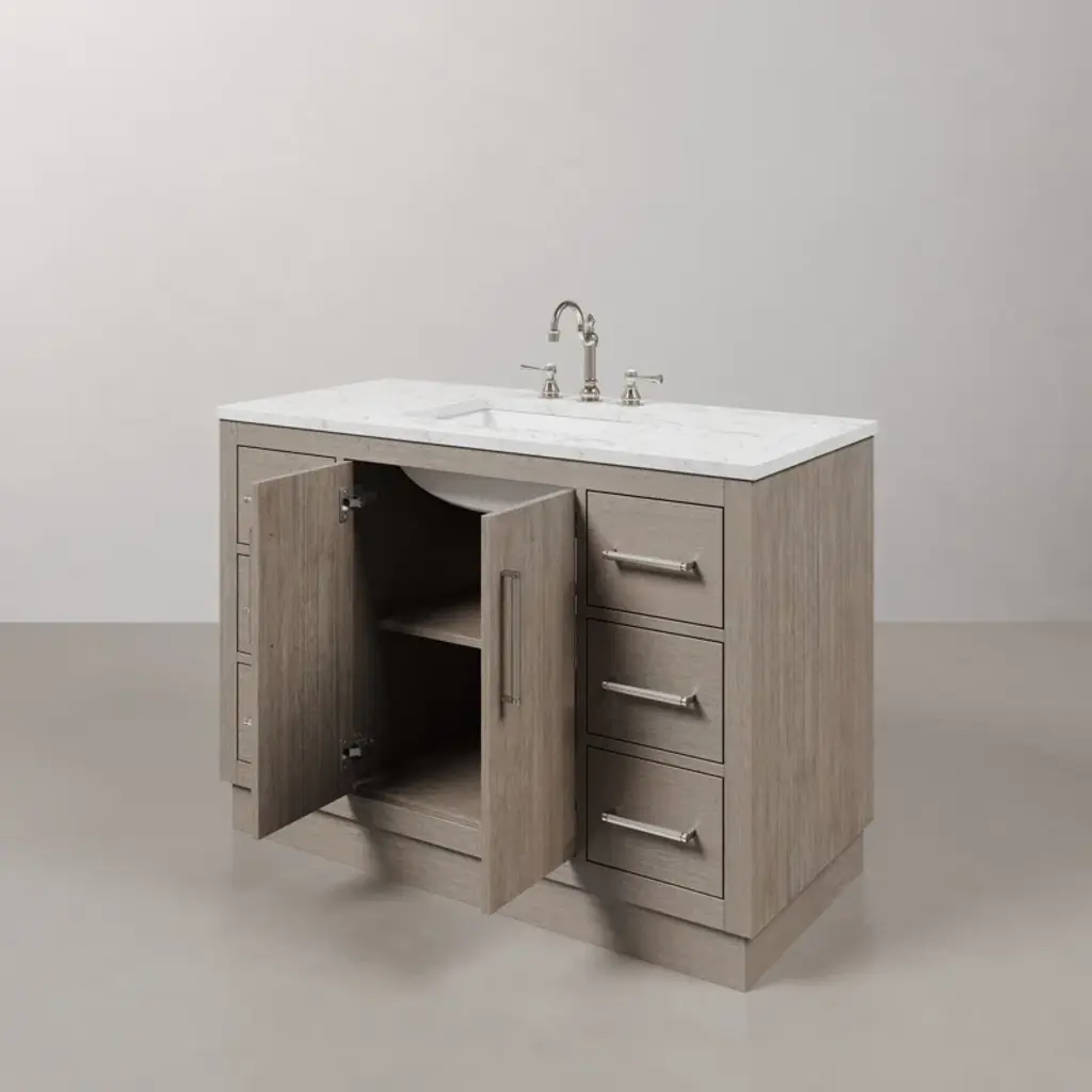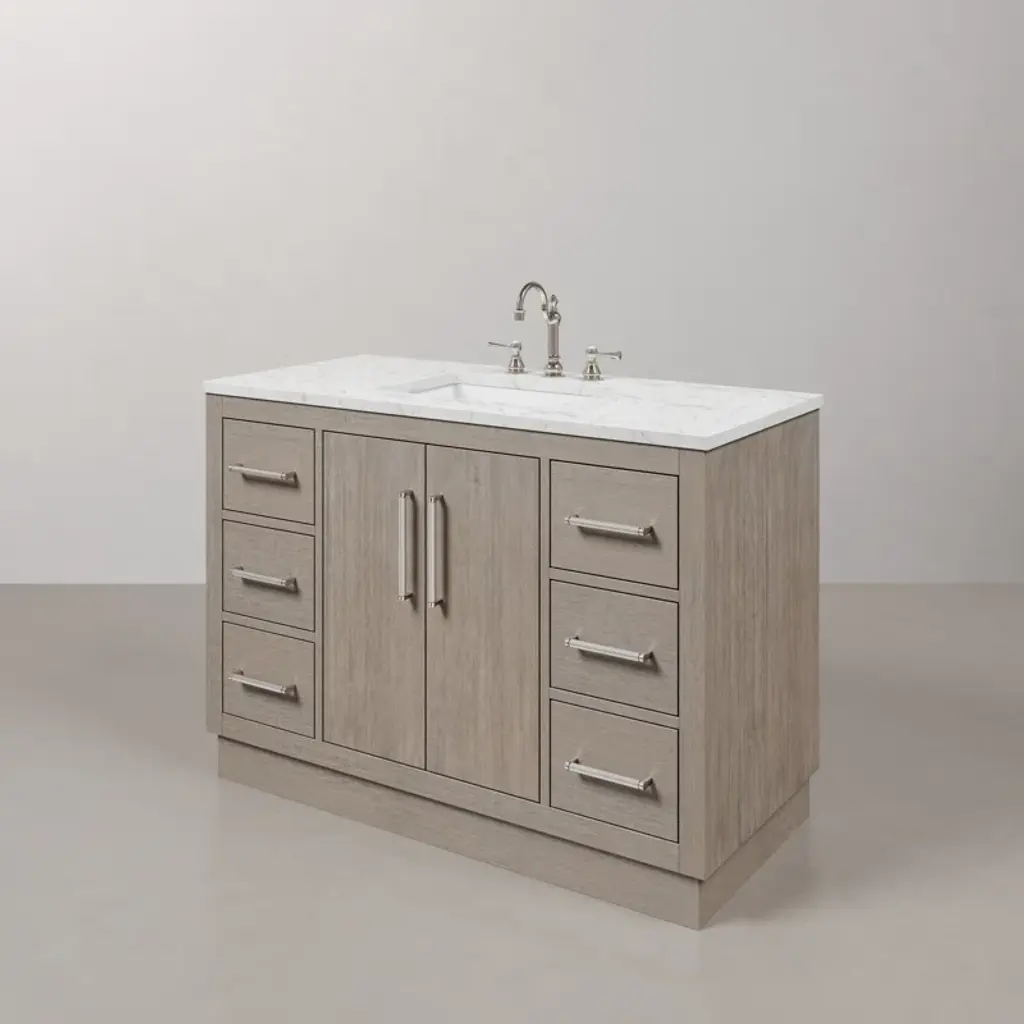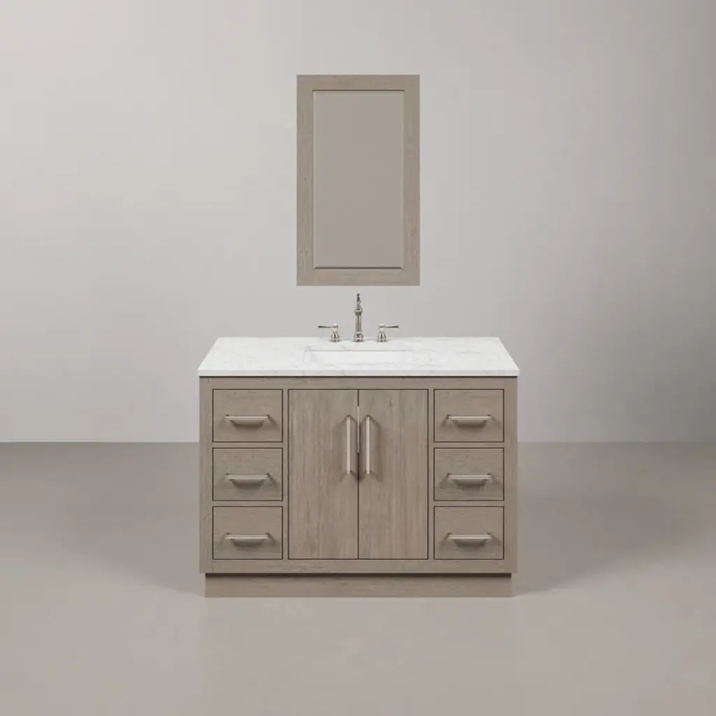 Kamila 48" Carrara White Marble Countertop Bath Vanity In Grey Oak With Faucet And Mirror