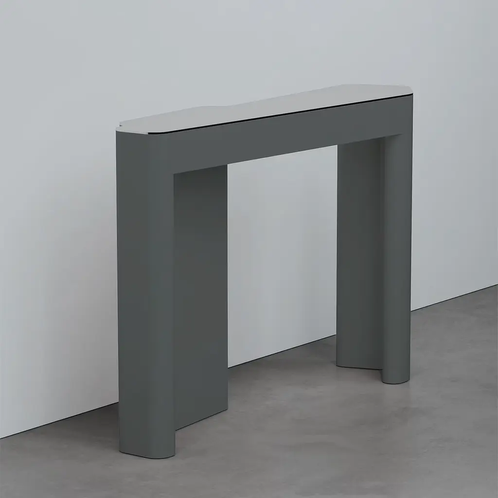 The Kara Console by Artefatto embraces asymmetry with a unique, unified form. Finished in Glossy Blue Cenere lacquer with an Extra Clear mirrored top, it highlights its distinct shape, as the legs and top blend seamlessly. Available in both matte and high gloss finishes, it is a console that adds character and elegance to any interior.