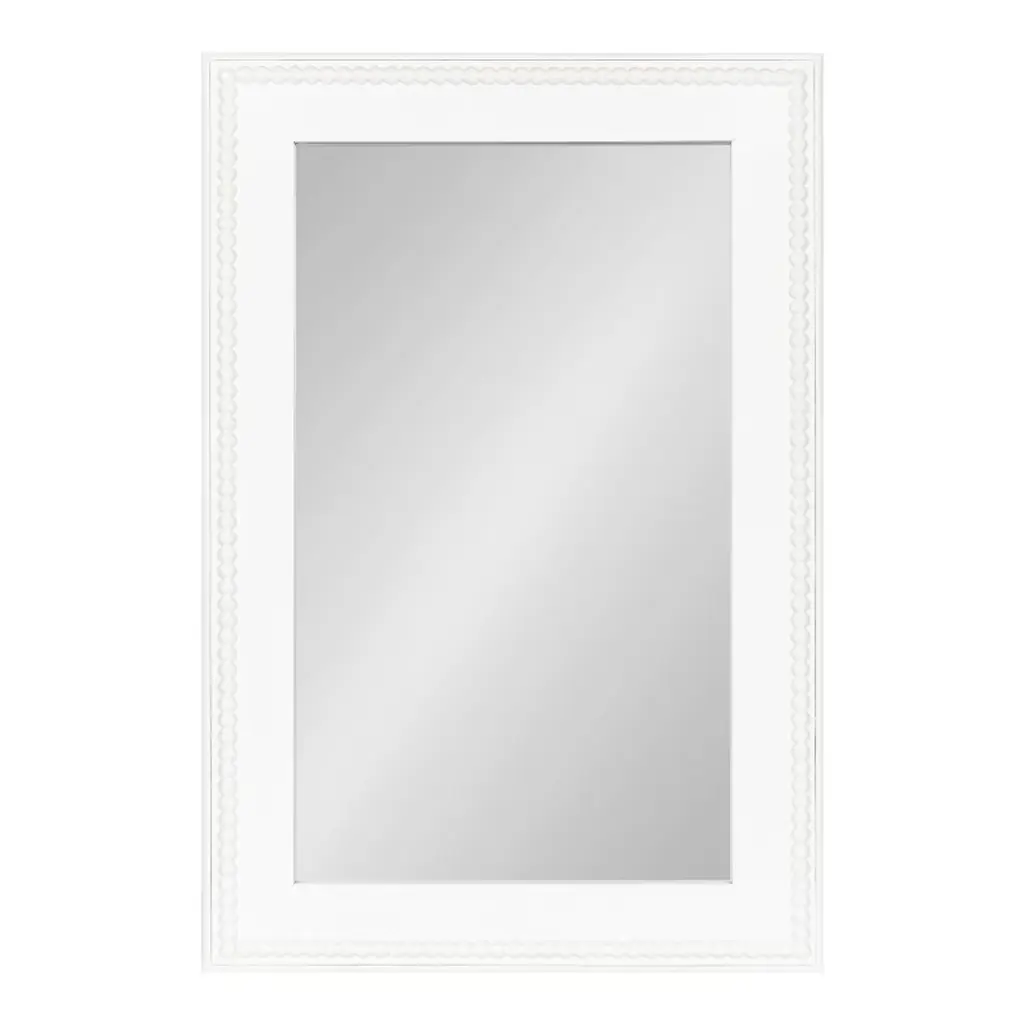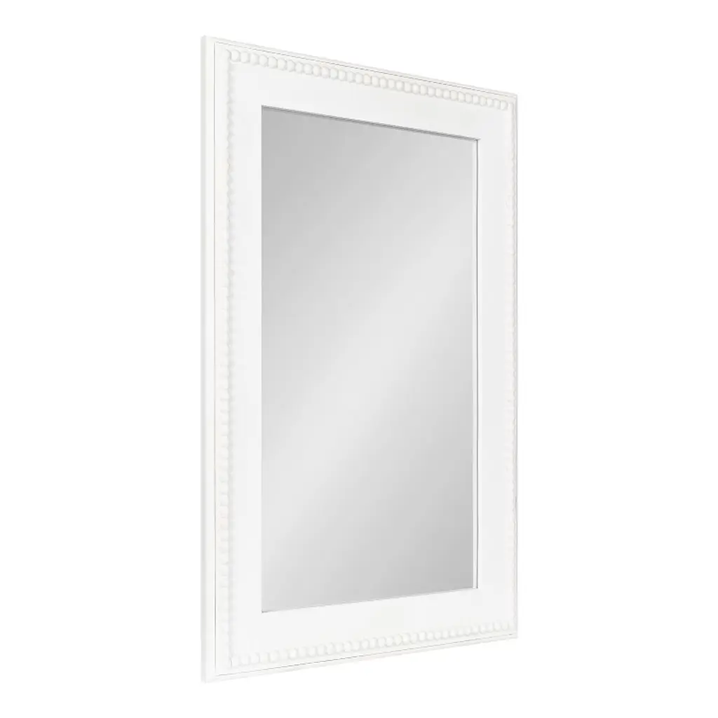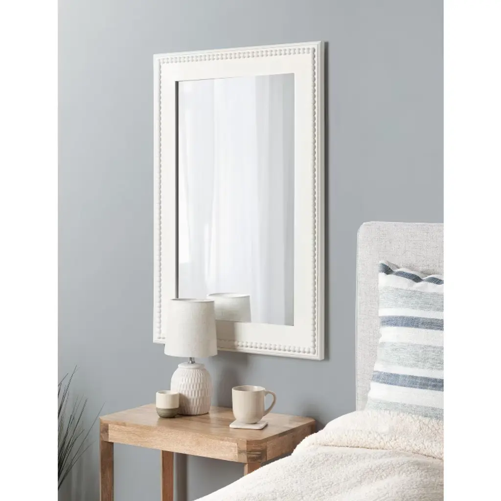 Create the cozy home of your dreams by incorporating the Strahm mirror into your personalized wall decor. Inspired by years of iconic, classic design and the warmth of traditional home decor, this wall mirror features a rectangular shape complete with a vintage beaded edge that provides a textural look and feel. The frame itself is crafted from a lightweight blend of wooden material, allowing it to hang without supporting a lot of weight. The Strahm frame also comes in a white finish, allowing it to blend into various decor themes throughout your home seamlessly. The overall dimensions of this timeless piece of wall decor are 24 inches wide by 1.25 inches deep by 36 inches tall, making it a commanding statement piece for any room. It hangs both vertically and horizontally to match the decorative gallery you want to create, making it versatile for any size space. Use this mirror as a tasteful bathroom mirror above your vanity, or use it as a lovely piece of wall decor in your living room, bedroom, or entryway. Hang this mirror in a matter of minutes in any room by using the metal D-ring hangers securely attached to the back of the frame.