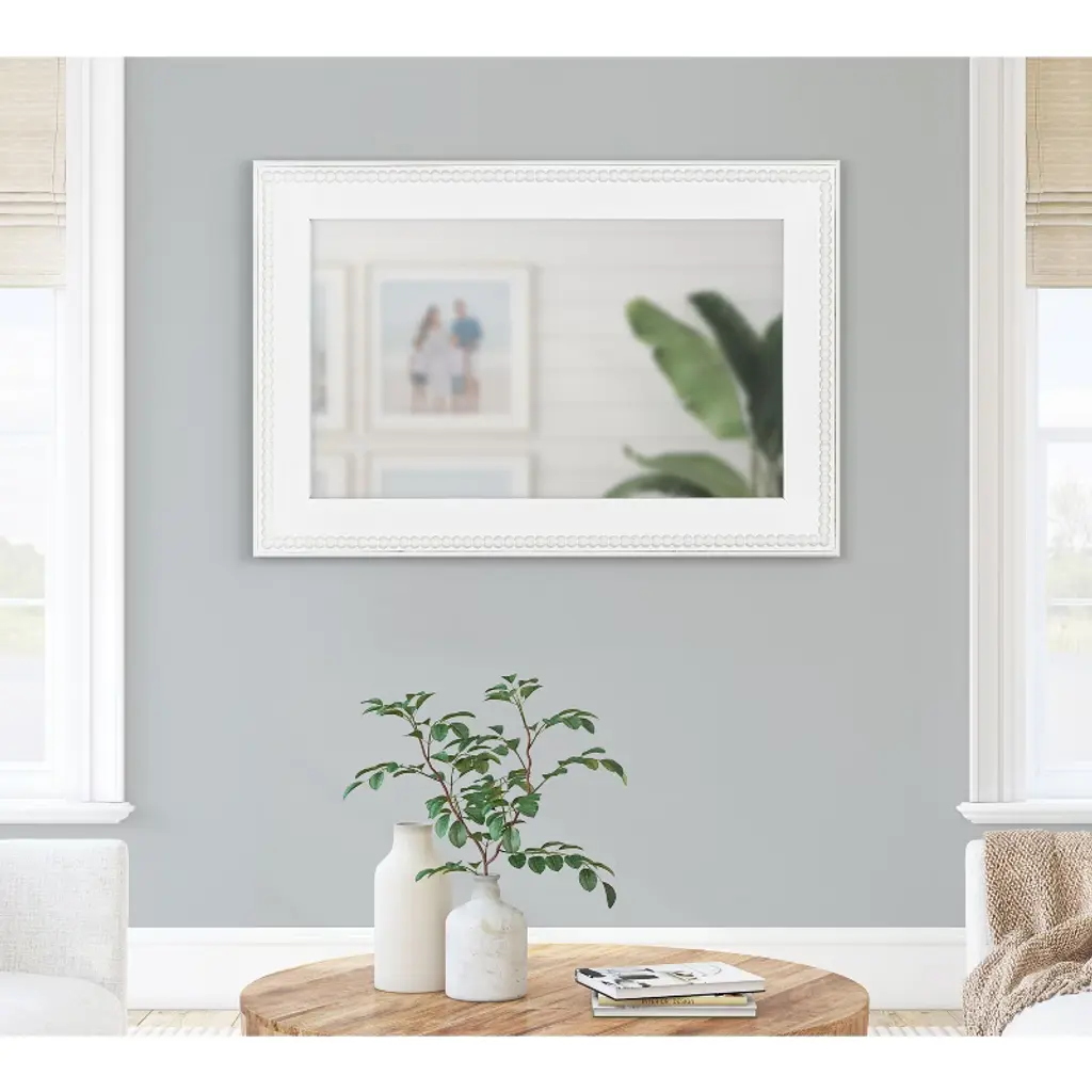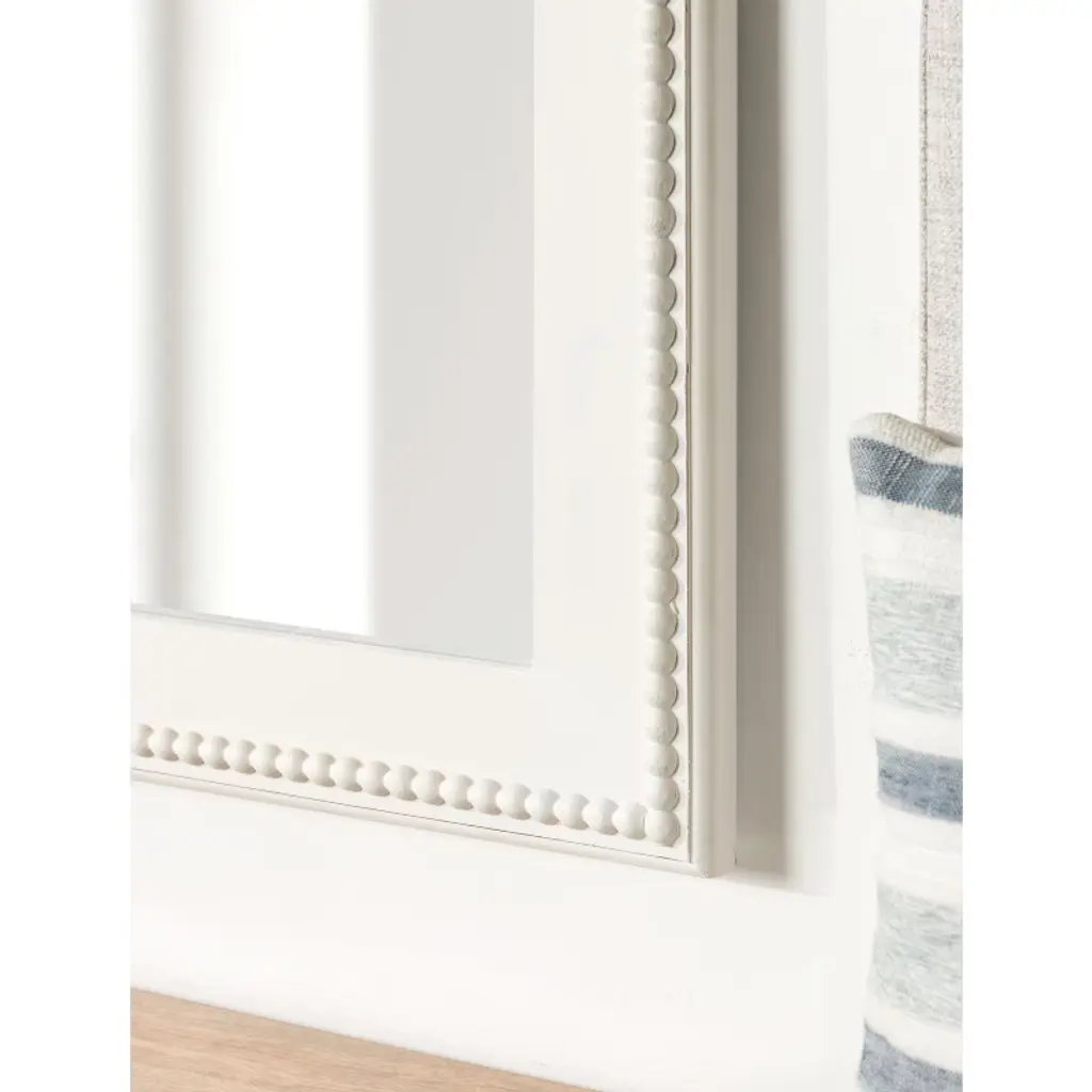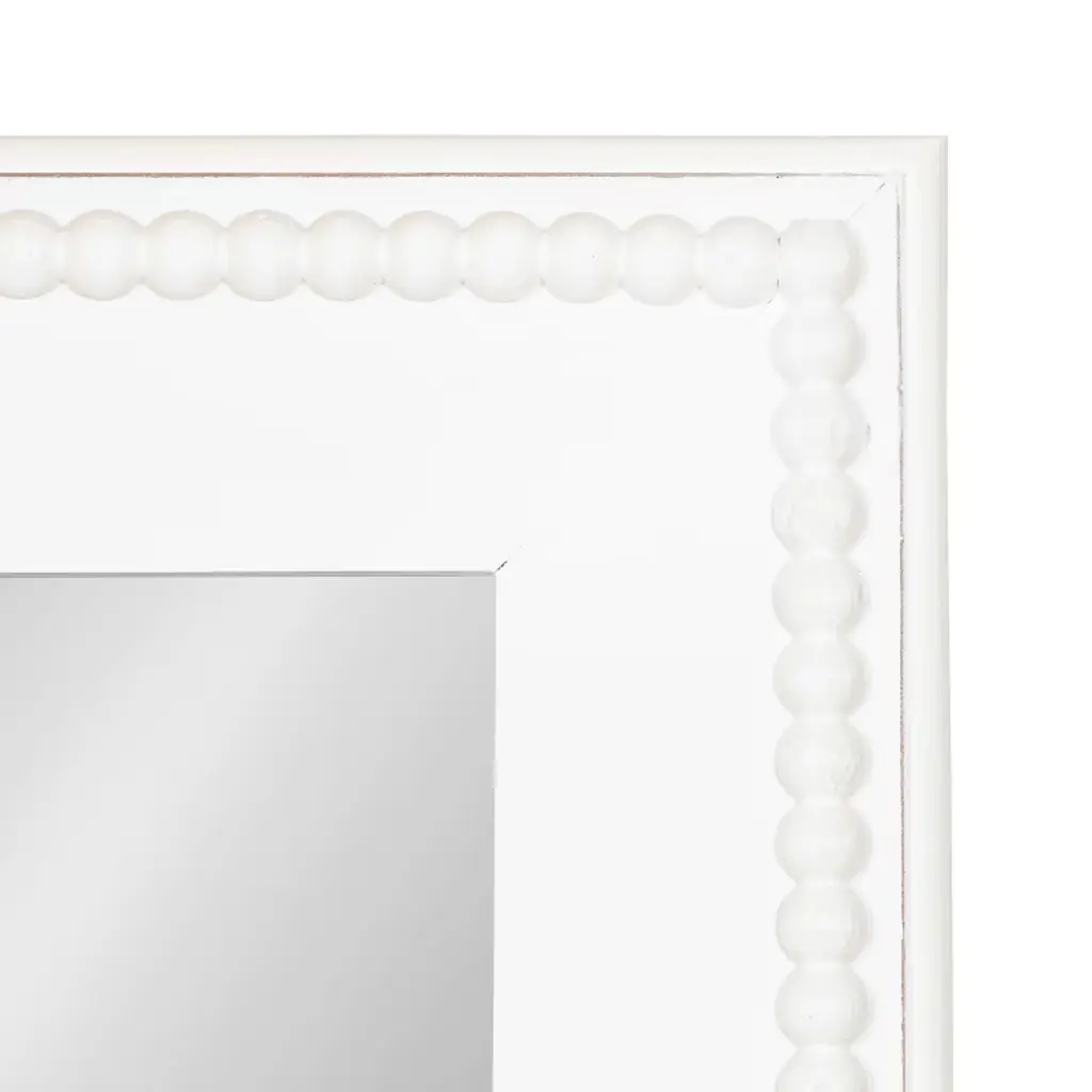 Create the cozy home of your dreams by incorporating the Strahm mirror into your personalized wall decor. Inspired by years of iconic, classic design and the warmth of traditional home decor, this wall mirror features a rectangular shape complete with a vintage beaded edge that provides a textural look and feel. The frame itself is crafted from a lightweight blend of wooden material, allowing it to hang without supporting a lot of weight. The Strahm frame also comes in a white finish, allowing it to blend into various decor themes throughout your home seamlessly. The overall dimensions of this timeless piece of wall decor are 24 inches wide by 1.25 inches deep by 36 inches tall, making it a commanding statement piece for any room. It hangs both vertically and horizontally to match the decorative gallery you want to create, making it versatile for any size space. Use this mirror as a tasteful bathroom mirror above your vanity, or use it as a lovely piece of wall decor in your living room, bedroom, or entryway. Hang this mirror in a matter of minutes in any room by using the metal D-ring hangers securely attached to the back of the frame.