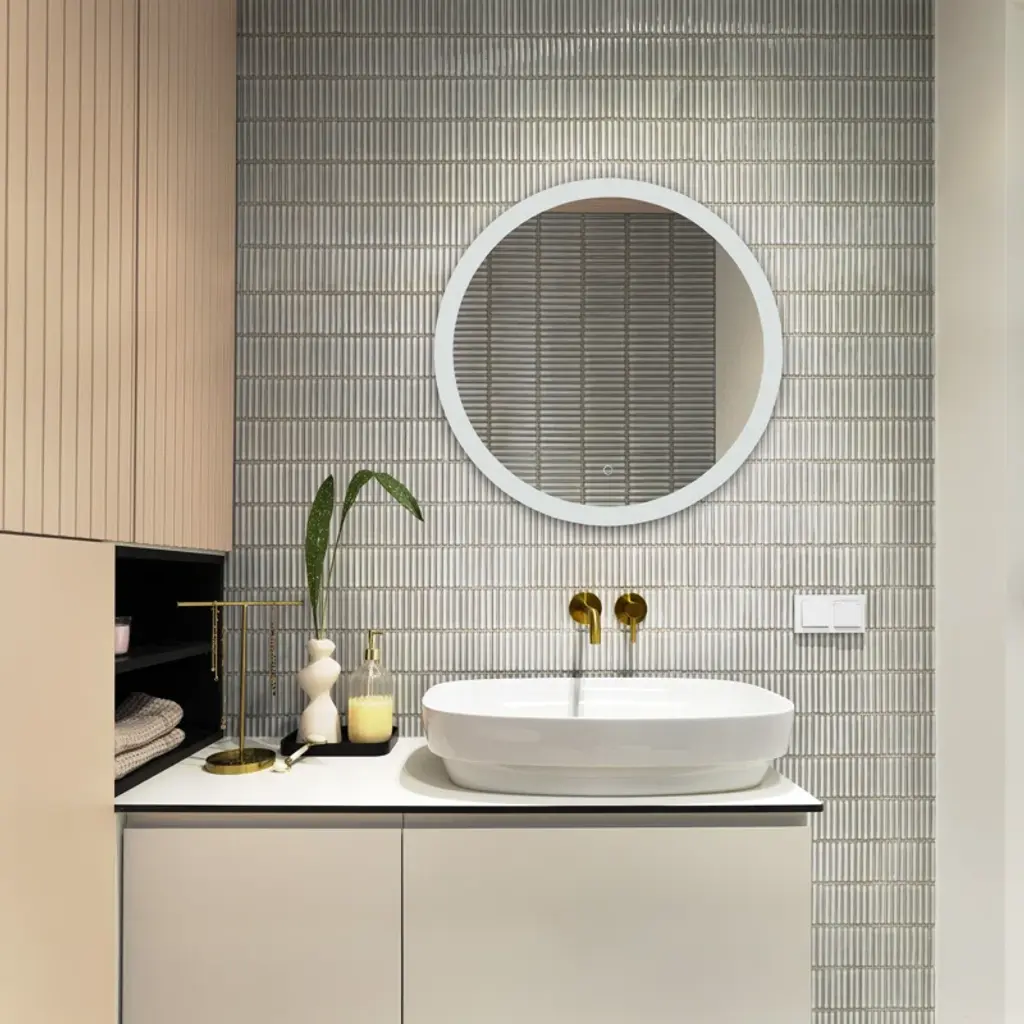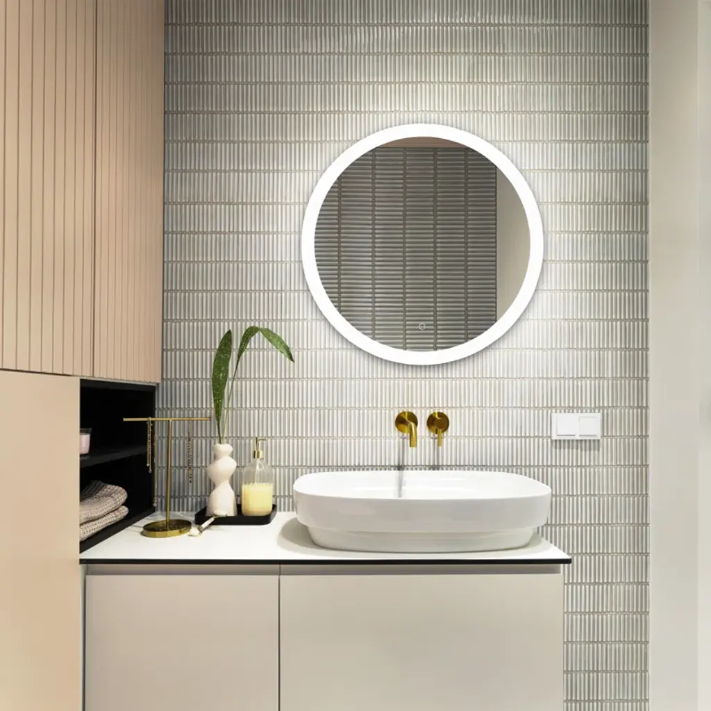 Give a trendy and futuristic appeal to your home with our Kave LED mirror. Featuring a modern and minimalist silhouette, our round mirror remains a sleek yet eye-catching addition to any space. When lit up, the white frosting around the mirror creates a halo effect to ramp up the ambiance of your space. A perfect blend of style and functionality, our classy mirror can give an instant upgrade to your bath, bedroom, or wardrobe.