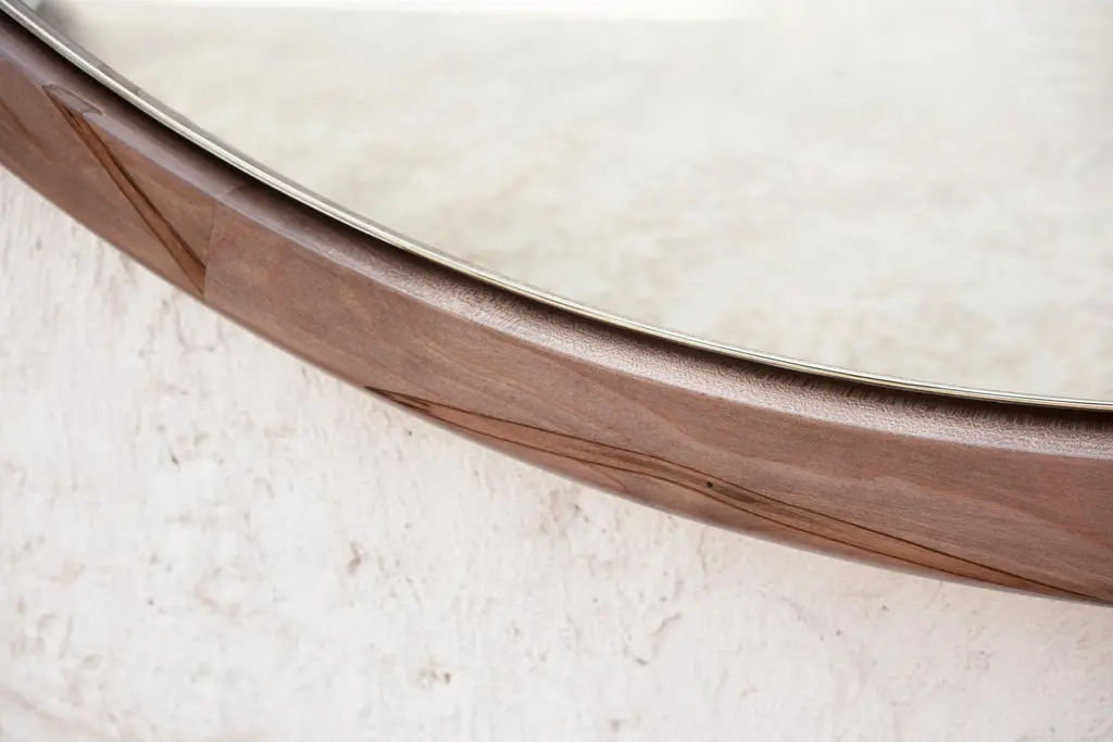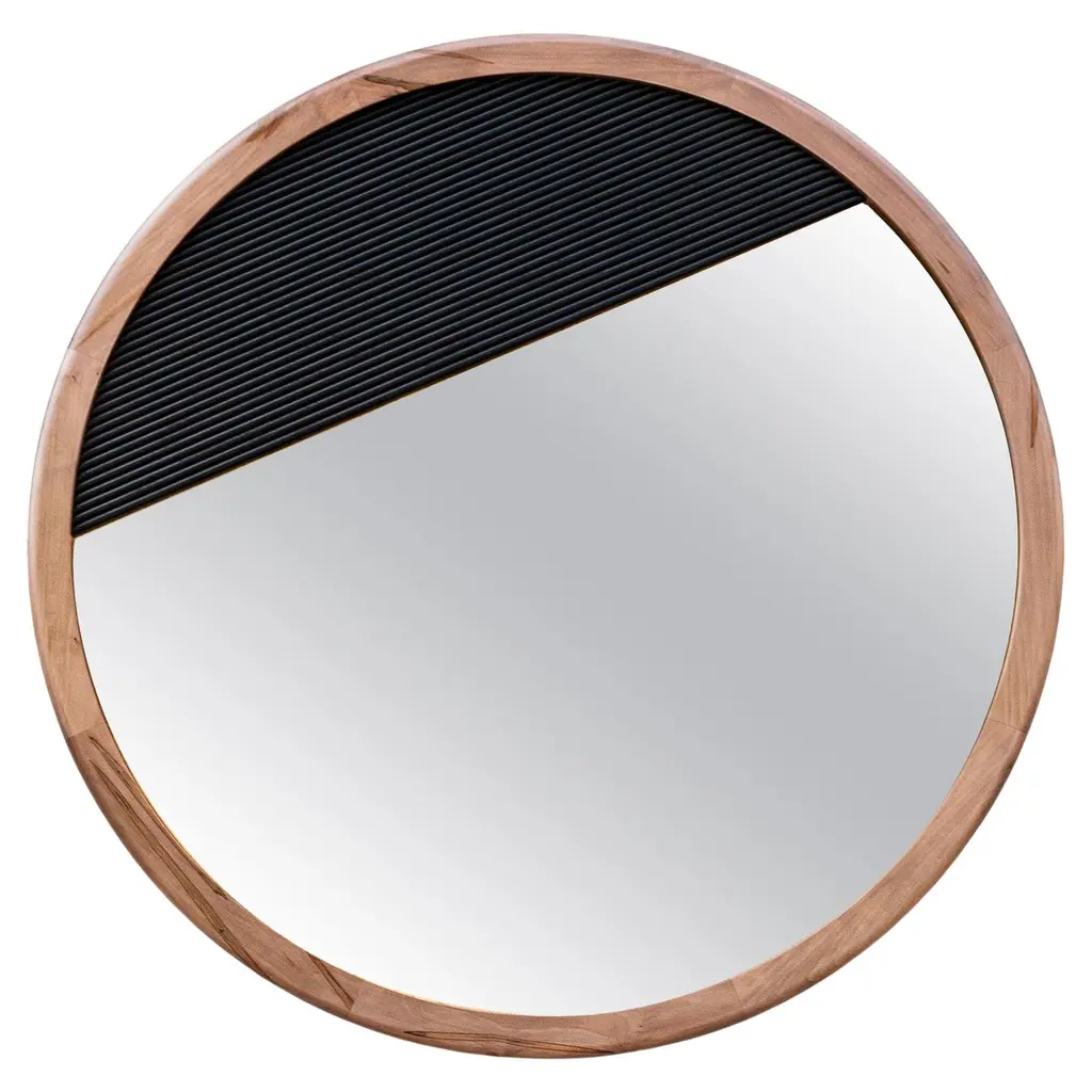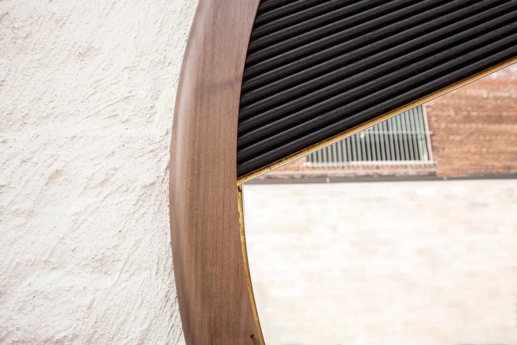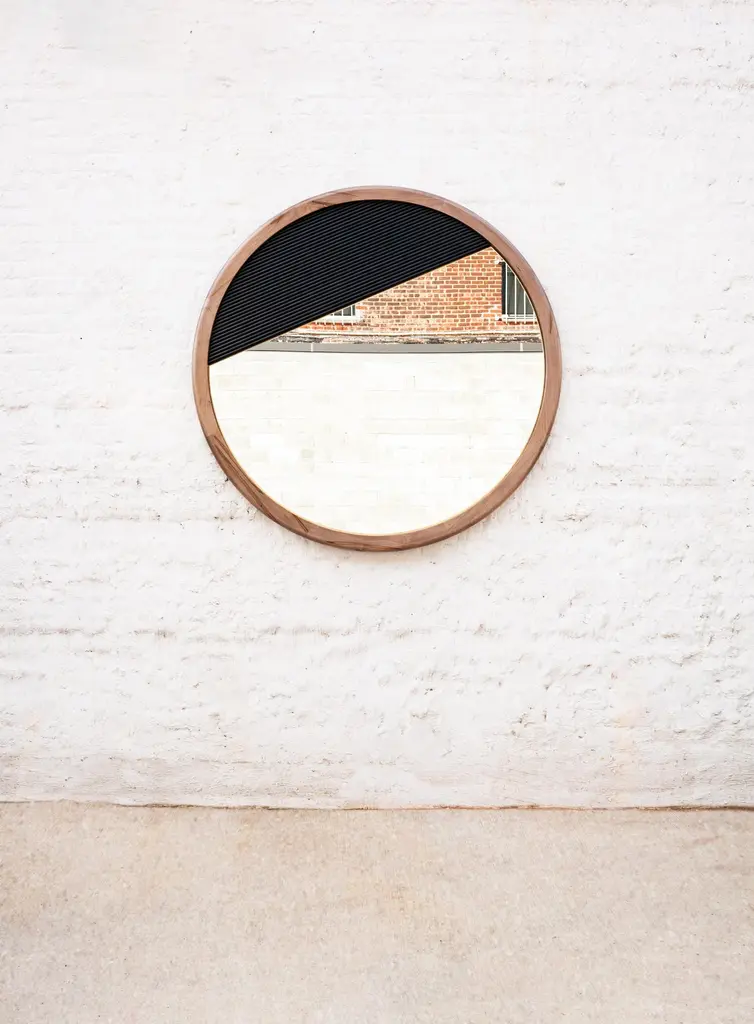 We like surprises, like the hint of gold leaf peeking out from the frame, and fluted white oak overlay, on our Kenmare mirror. A special collaboration with designer Melanie Morris, this bolder departure from previous pieces incorporates some of our classic elements like oxidized ambrosia maple.Finishes shown: oxidized Ambrosia maple frame / black white oak fluted banding / gold leaf insetStandard size options:D 42” / D 2” D 48” / D 2” D 56” / D 2” Custom sizes and finishes available.