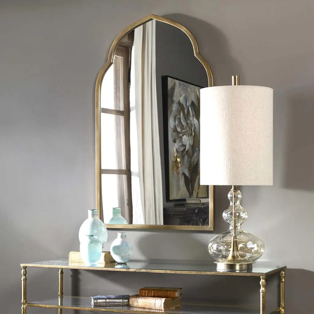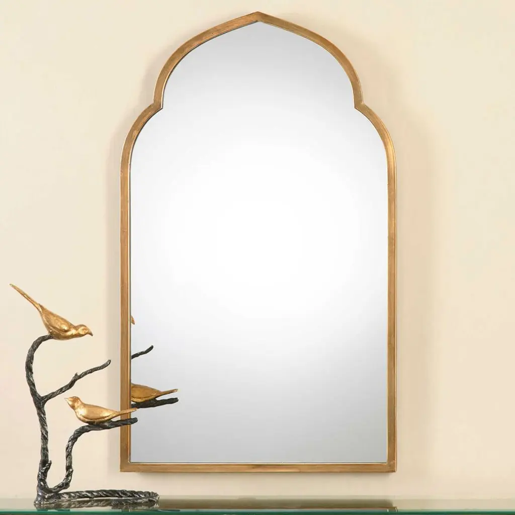 Kenneth Hollywood Regency Antique Gold Metal Frame Arch Wall Mirror