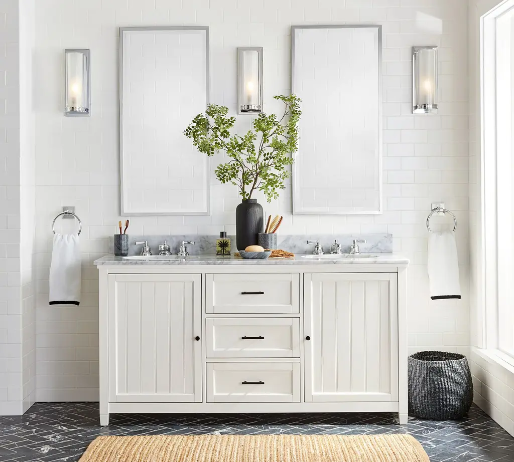 Featuring a simple design and tall proportions, our best-selling Kensington Collection has a straightforward style that's incredibly timeless. This slim mirror is ideal for smaller baths and can be doubled up in larger spaces.