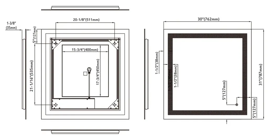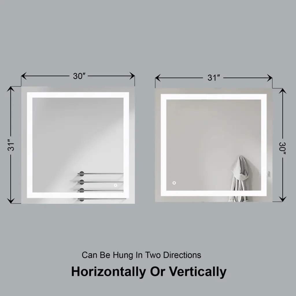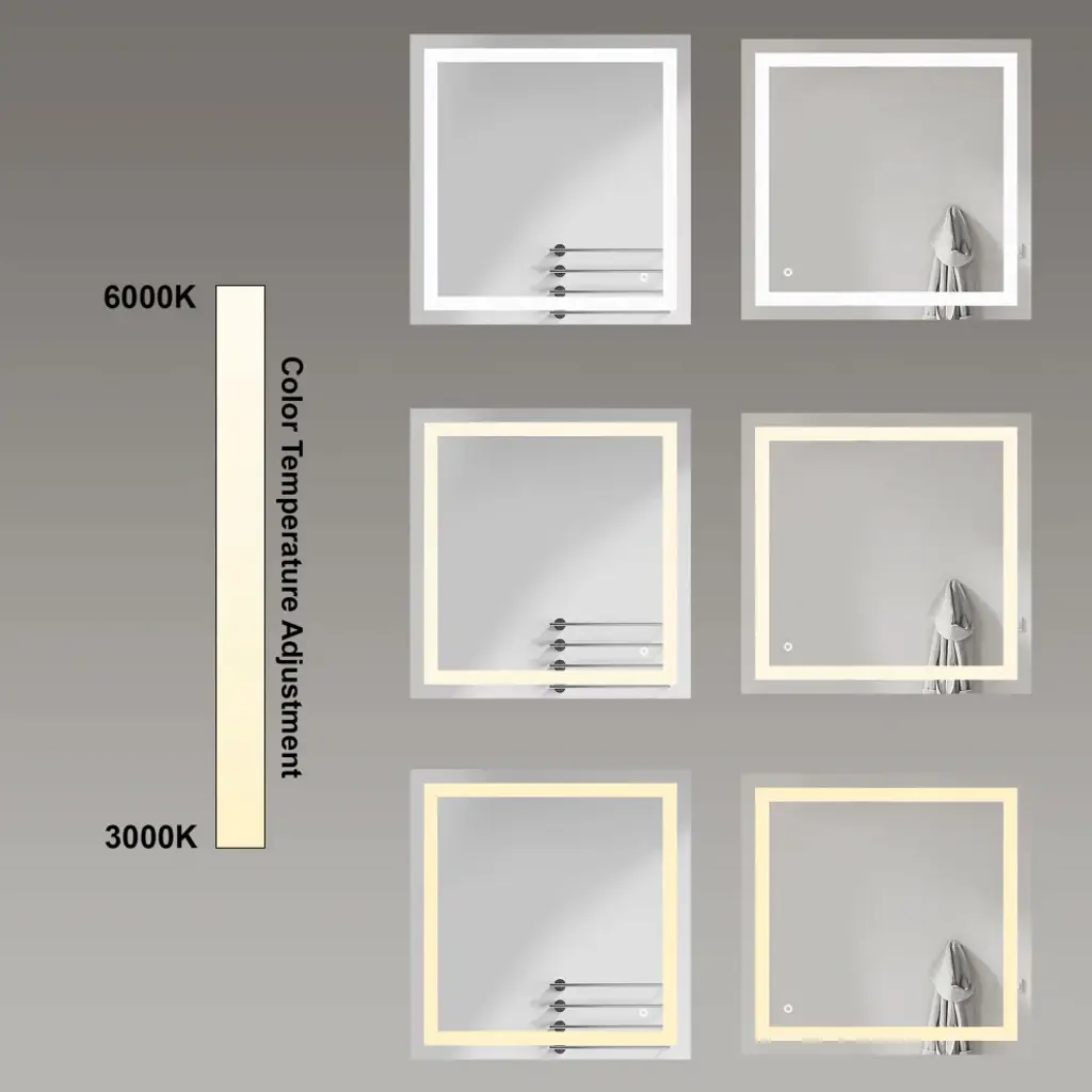 Enhance your space with our versatile LED Mirror. Designed for both horizontal and vertical hanging (with an easy-to-use mounting template) this mirror effortlessly adapts to your needs. With our soft touch on/off switch you can not only activate the mirror''s anti-fog feature and radiant light display, but you can transition between casting a warm and bright light to set the perfect ambiance for any occasion. Crafted from premium aluminum and glass, this mirror exudes modern elegance. The captivating light display around the inside border adds a touch of sophistication and creates a stunning visual effect. Elevate your decor and enjoy the functionality of this exceptional LED Mirror in your bathroom, bedroom, dressing area, and beyond.