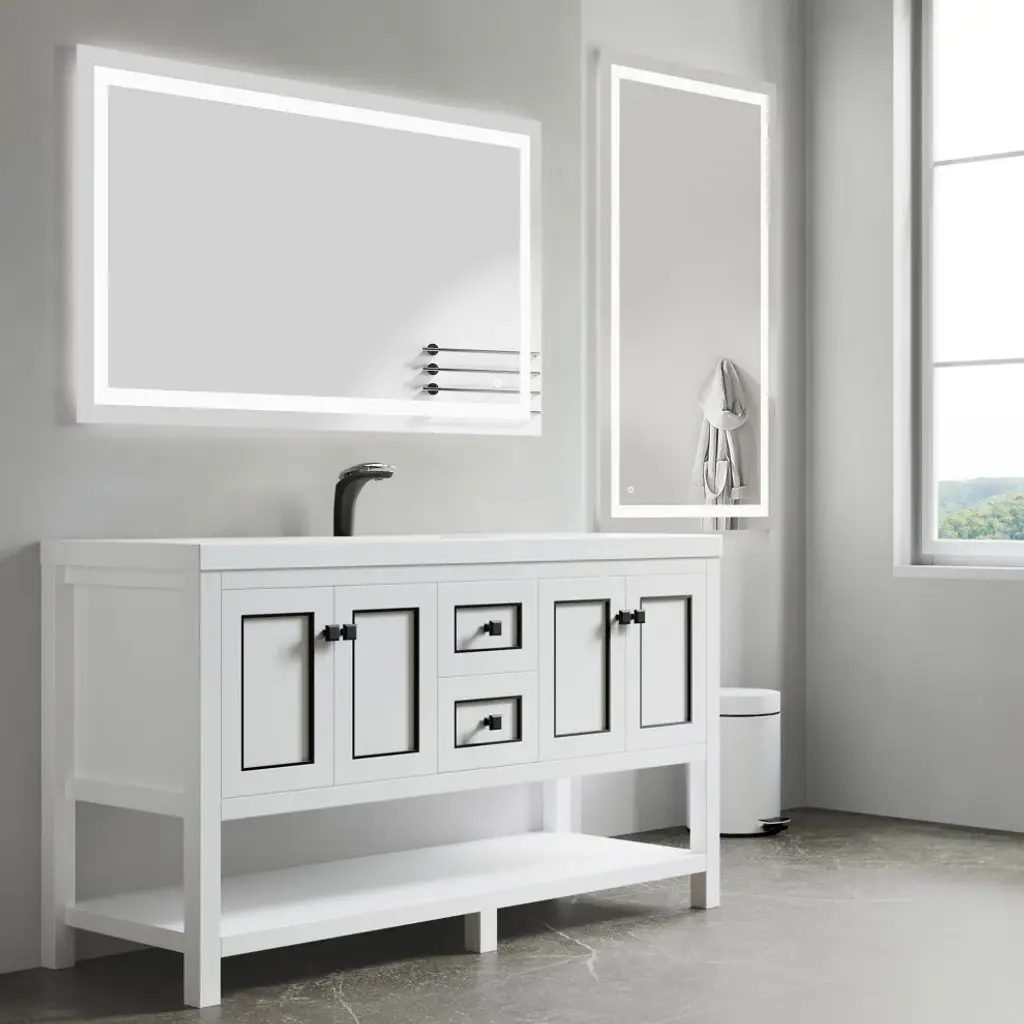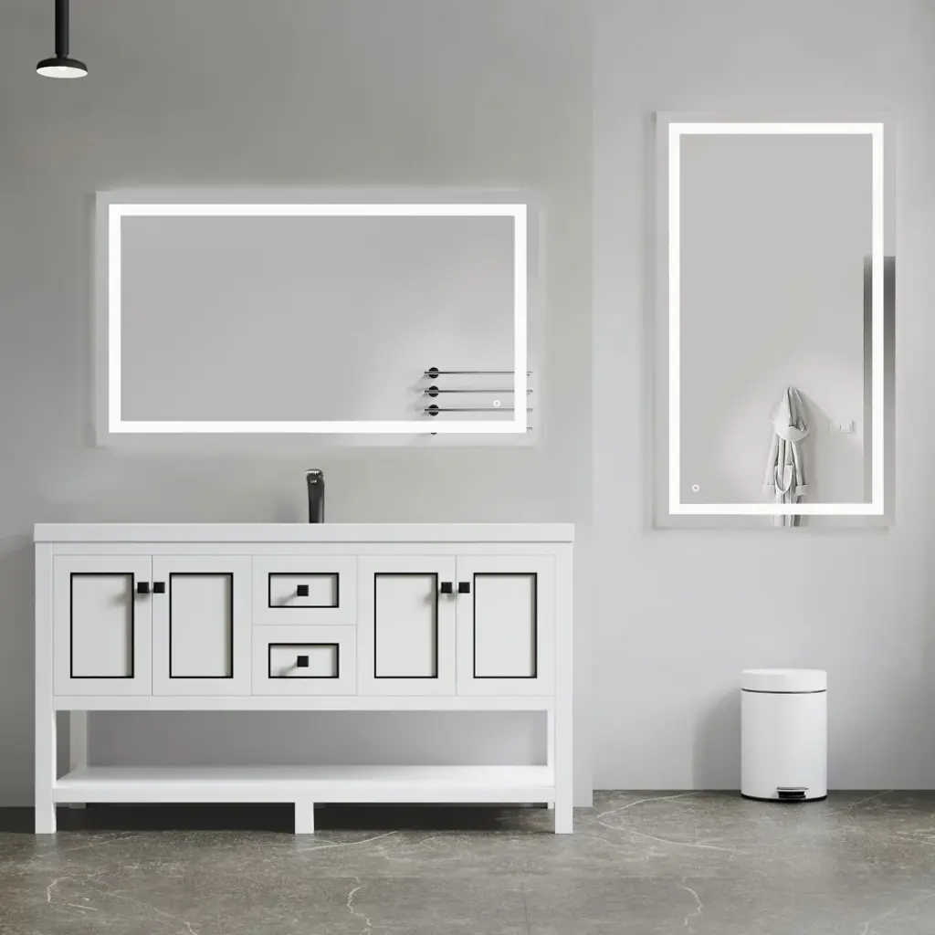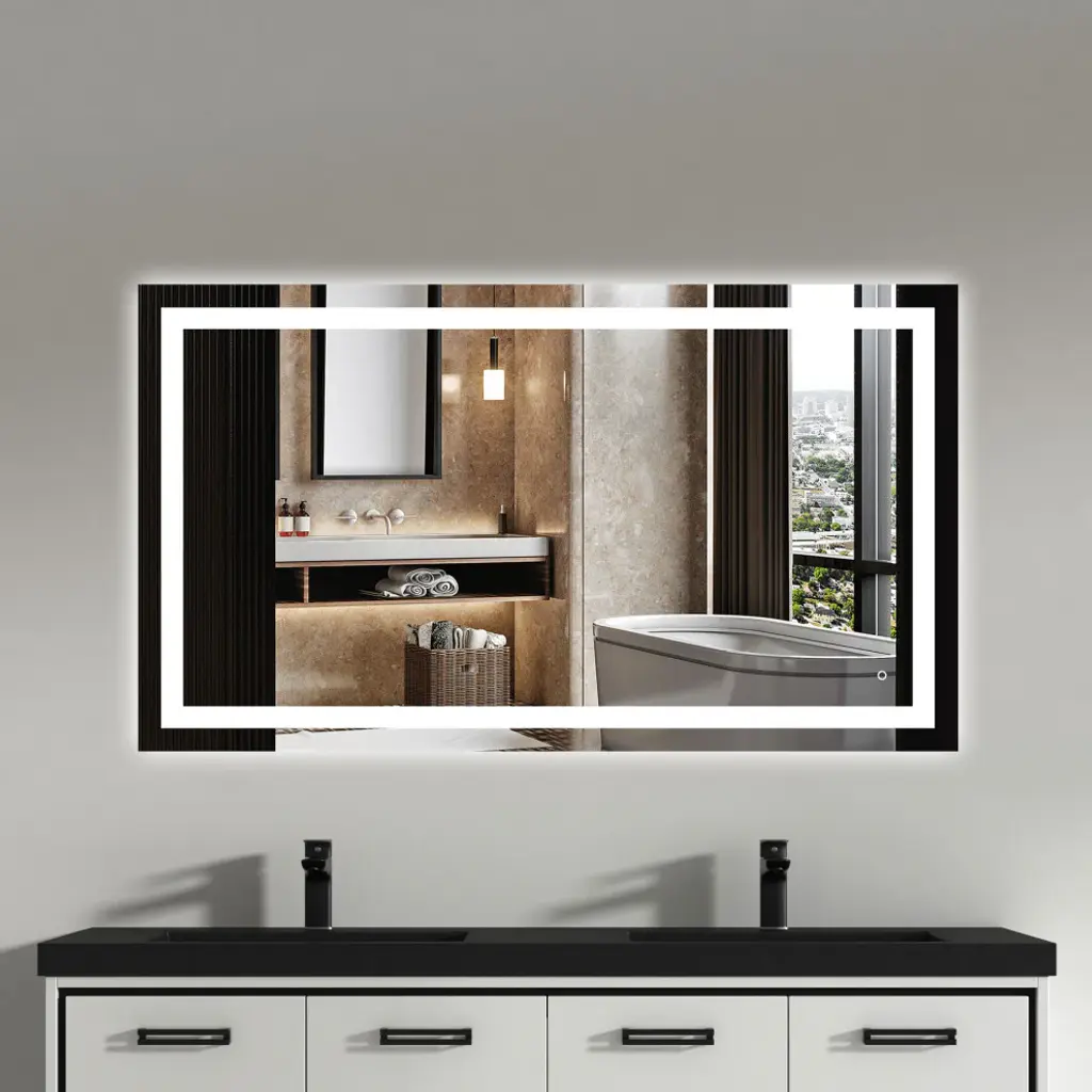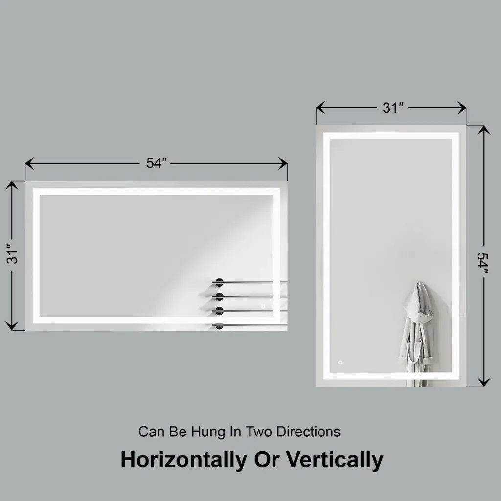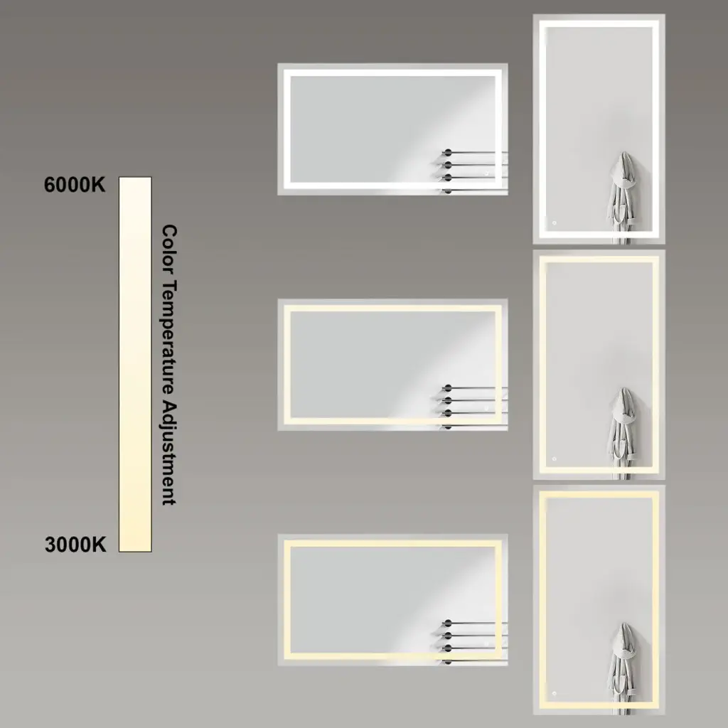 Enhance your space with our versatile LED Mirror. Designed for both horizontal and vertical hanging (with an easy-to-use mounting template) this mirror effortlessly adapts to your needs. With our soft touch on/off switch you can not only activate the mirror''s anti-fog feature and radiant light display, but you can transition between casting a warm and bright light to set the perfect ambiance for any occasion. Crafted from premium aluminum and glass, this mirror exudes modern elegance. The captivating light display around the inside border adds a touch of sophistication and creates a stunning visual effect. Elevate your decor and enjoy the functionality of this exceptional LED Mirror in your bathroom, bedroom, dressing area, and beyond.