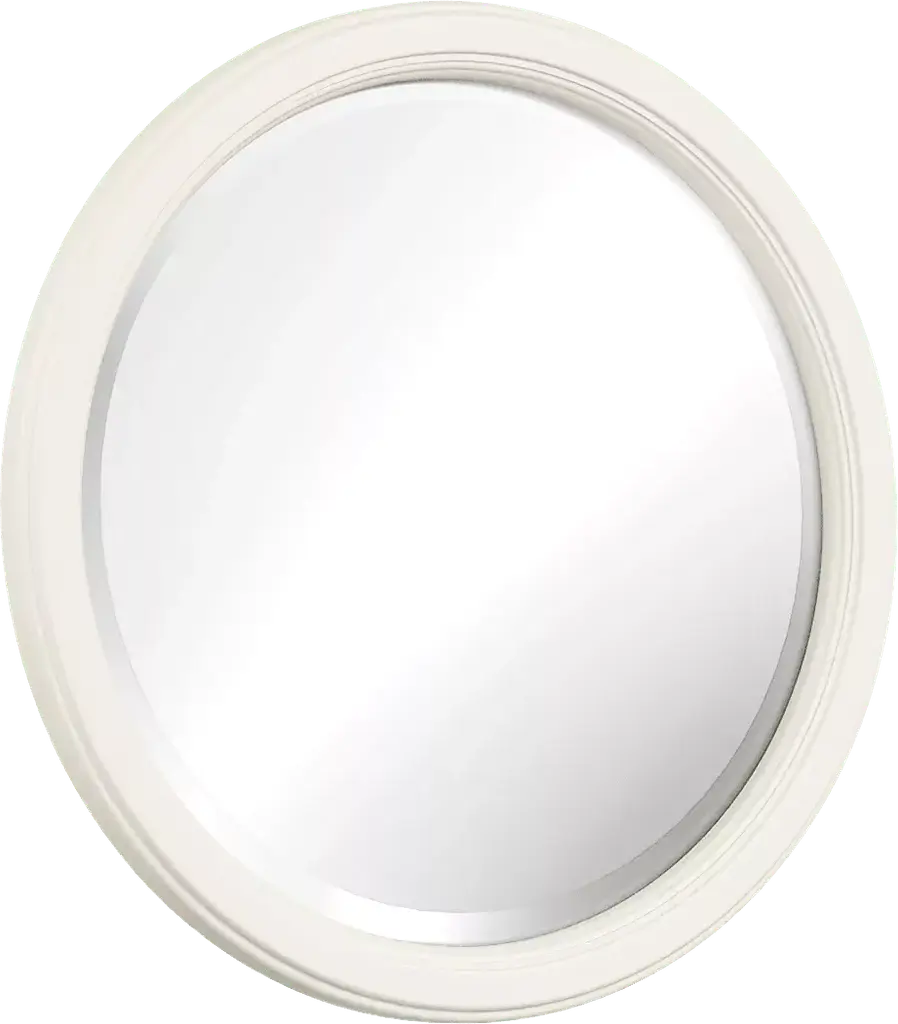 From staying up past your bedtime to oversleeping in style, the Oberon collection adds calmness and coolness to your routine. Crafted with oak veneers in cream finish, the frame of this beveled glass mirror is round and mounts to the matching dresser. Dresser sold separately.