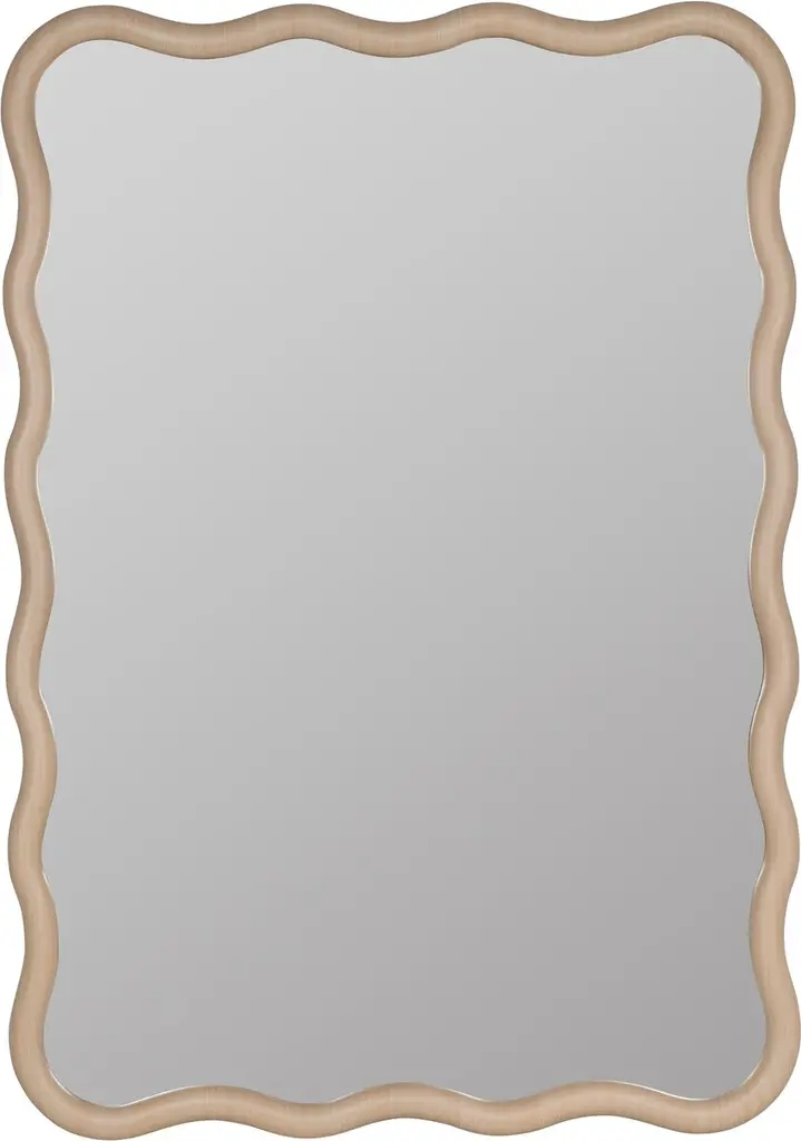 The curvaceous wood frame adds to this wall mirror's contemporary-cool vibe. Can be hung horizontally or vertically.