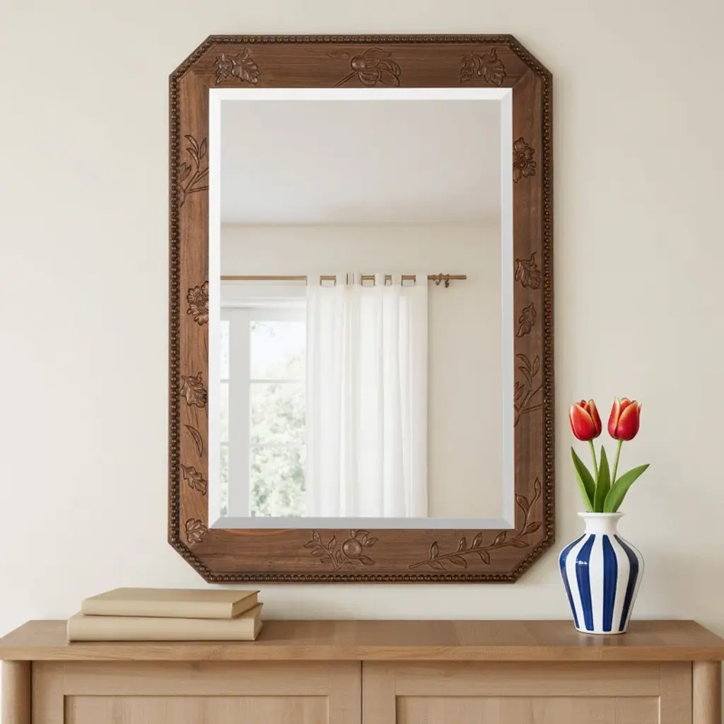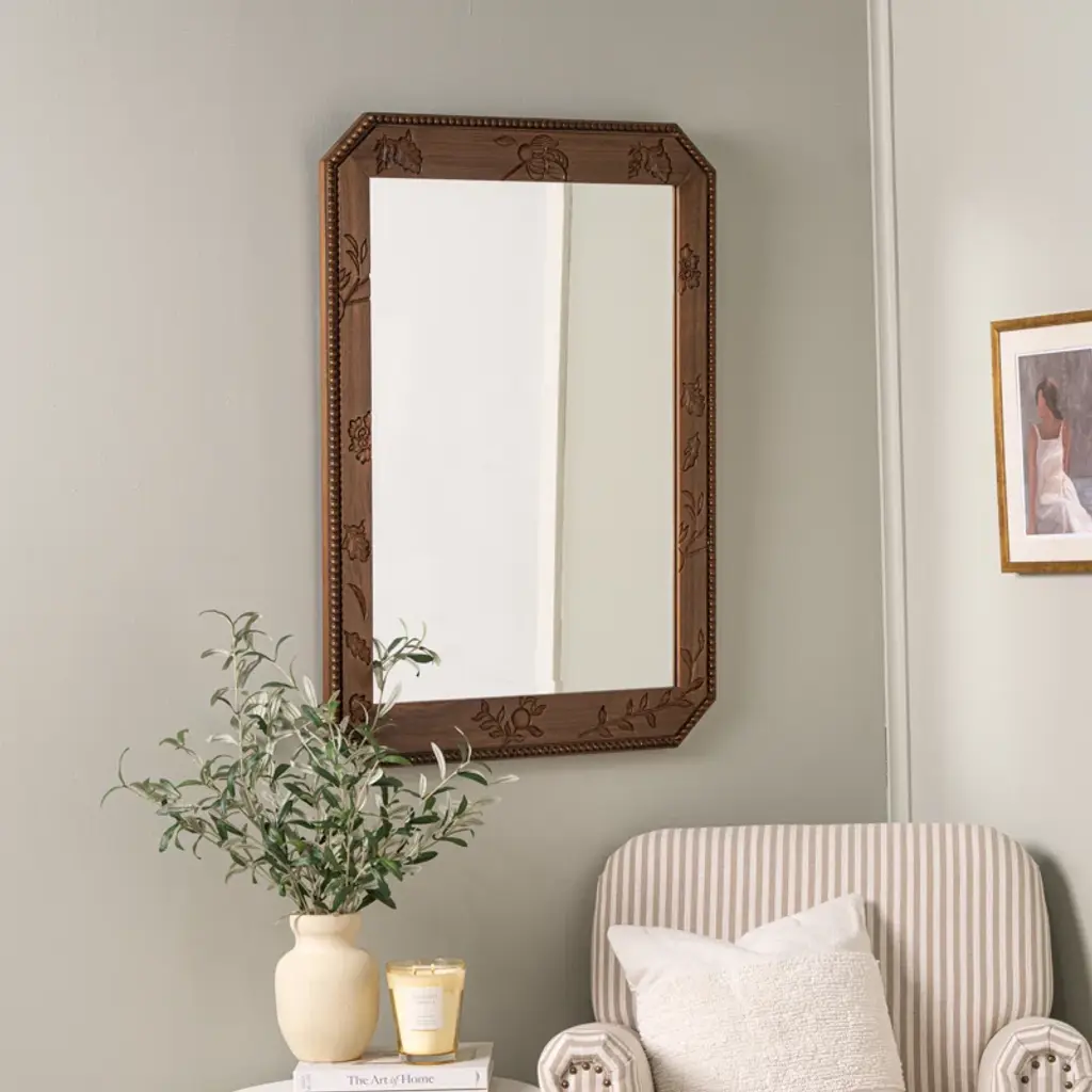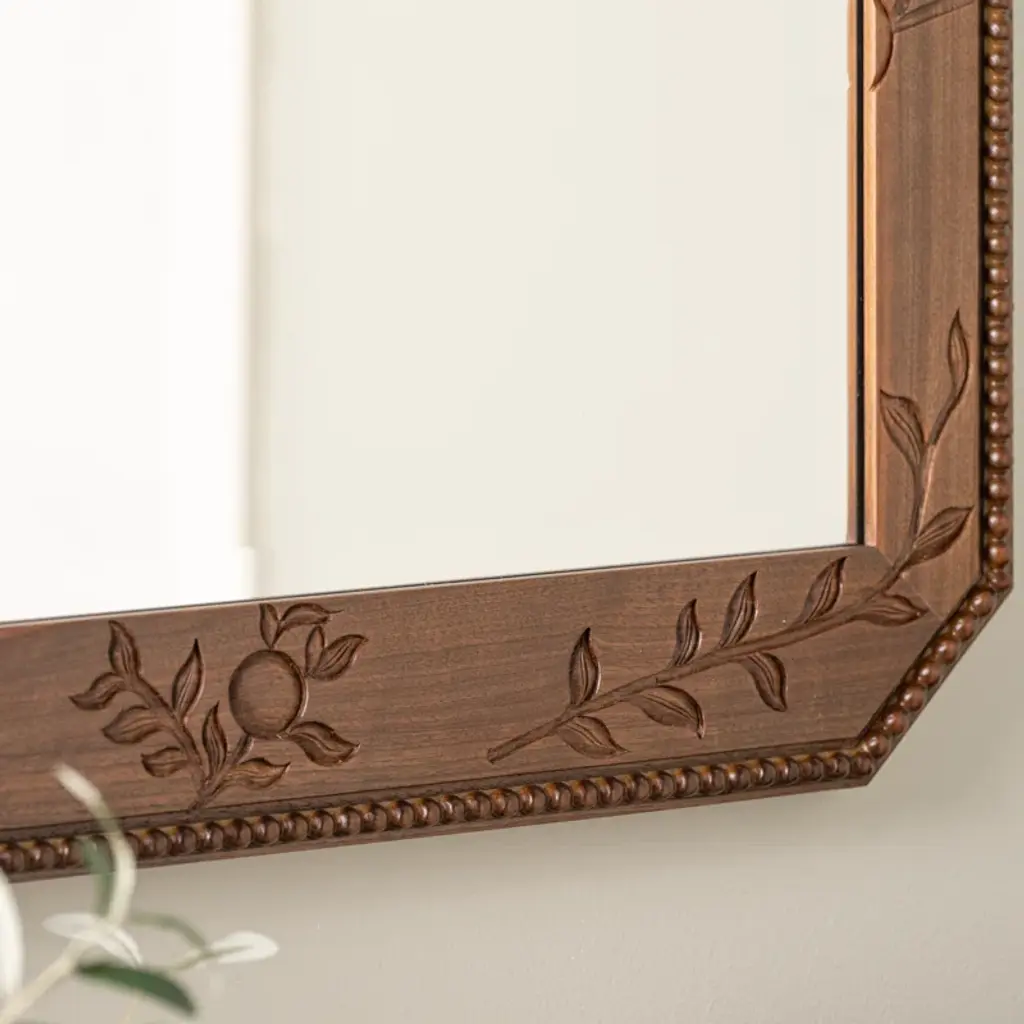 The beautiful Brinley Wall Mirror features an intricate, hand-crafted frame & finish. This piece is sure to add a statement to a space of any style.