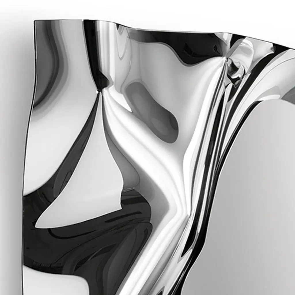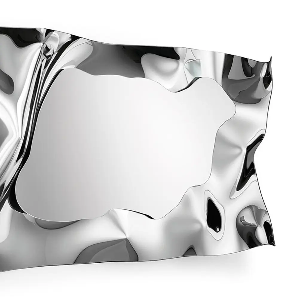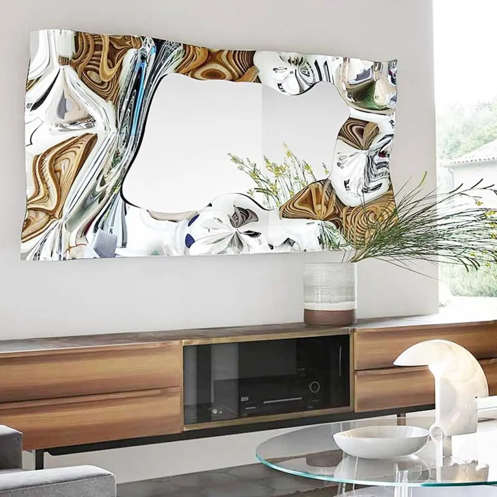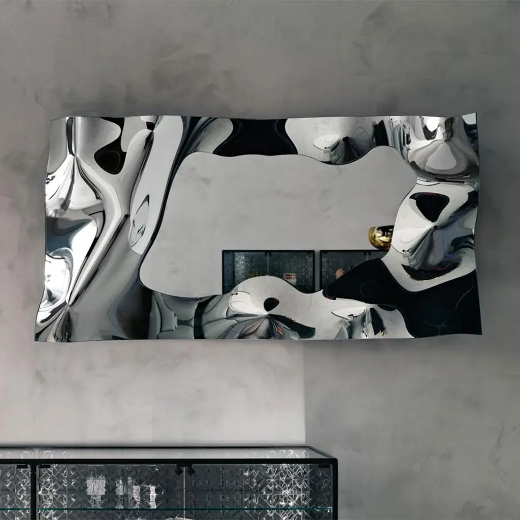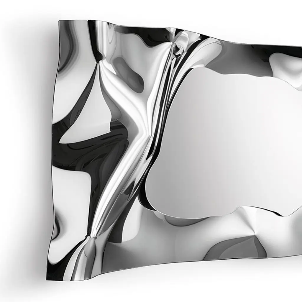 Mirror Kinky Rectangular in high temperature fused mirror glass,6mm thickness. With fused mirror glass frame and withsilvered metal back. The mirror can be hung horizontally or vertically.Also available in kinky square mirror.
