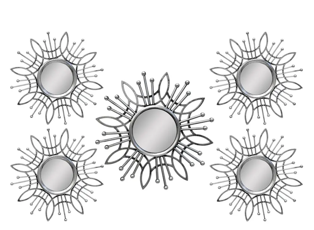 Watch your plain wall come to life with this set of Burst Mirrors. Each mirror has a floral-themed design, highlighted by a round mirror with gracefully curved borders and burst accents, making it a suitable centerpiece for your traditional home.