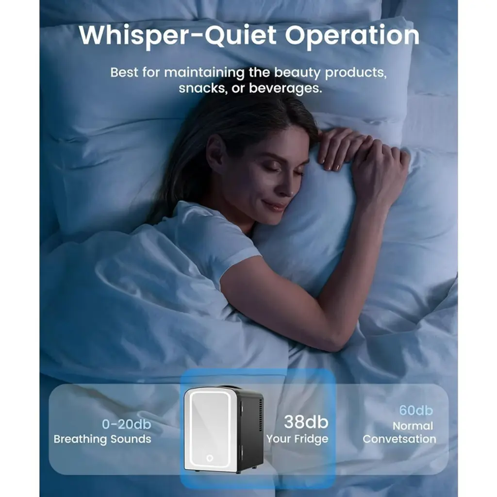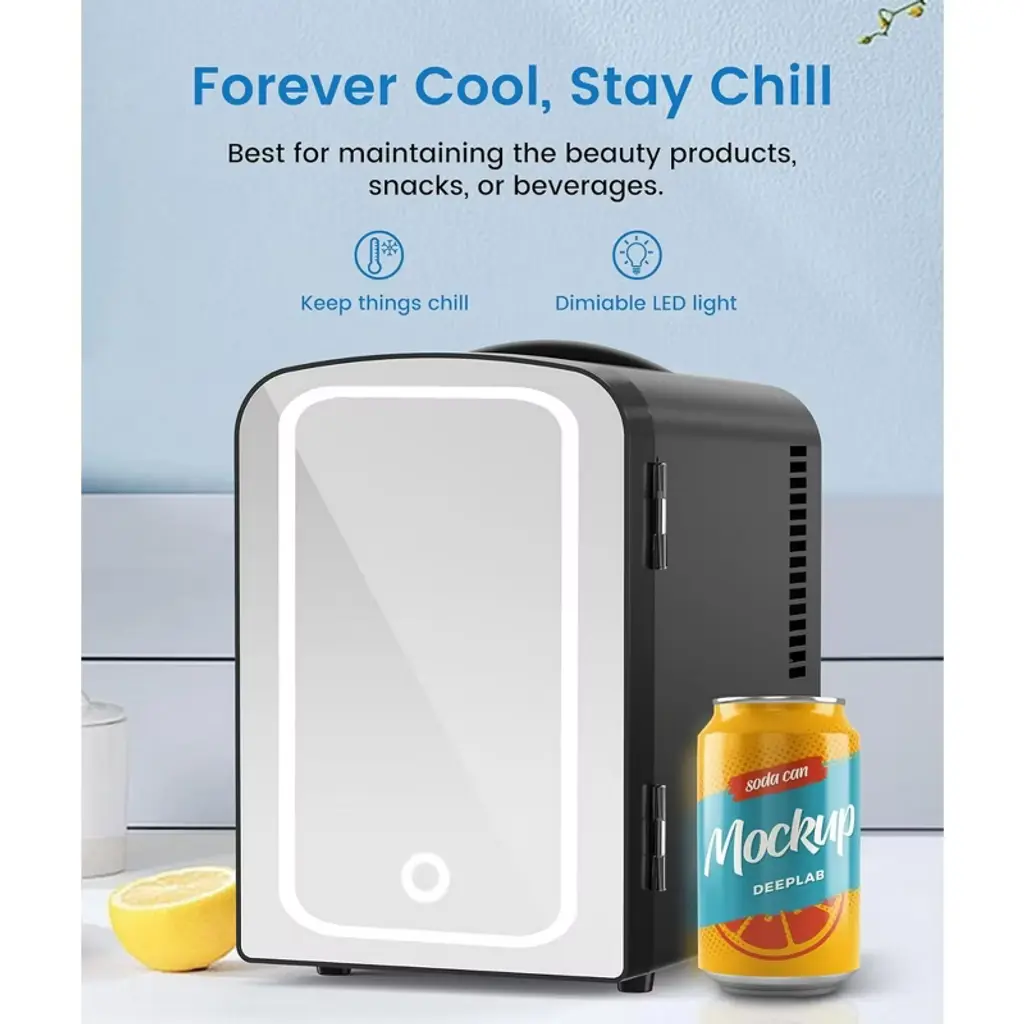 Kismile Mini Fridge With Dimmable Led Mirror, 4L Capacity For Refrigerating Makeup, Skincare And Food & Drink (Black)