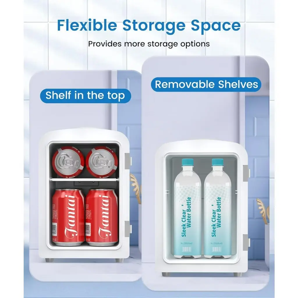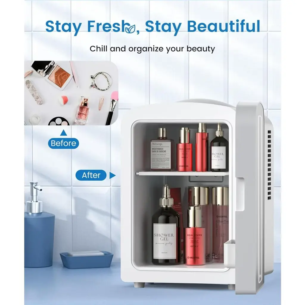 This multifunctional mini fridge combines practical cooling with vanity convenience, featuring a 4-liter capacity that accommodates up to six 330ml beverage cans while securely storing temperature-sensitive cosmetics and skincare products. The mirror-finished door with integrated LED lighting transforms the unit into an instant vanity station, enabling flawless makeup touch-ups and skincare routines anywhere. Designed for versatile use in cars, homes, or offices, it supports both DC-12V (car adapter) and AC-110V power inputs, adapting seamlessly to different environments. Unlike traditional compressor refrigerators, its advanced thermoelectric cooling system operates silently without vibration, making it ideal for bedrooms, dorms, or workspaces where noise reduction matters. The technology delivers faster cooling response than compressor systems with lower energy consumption, while its compact footprint (optimized for confined spaces) maintains precise temperature control for sensitive items like medications or electronics. This all-in-one solution merges efficient thermal management with user-centric design, offering portable cooling wherever needed without compromising performance or aesthetics.