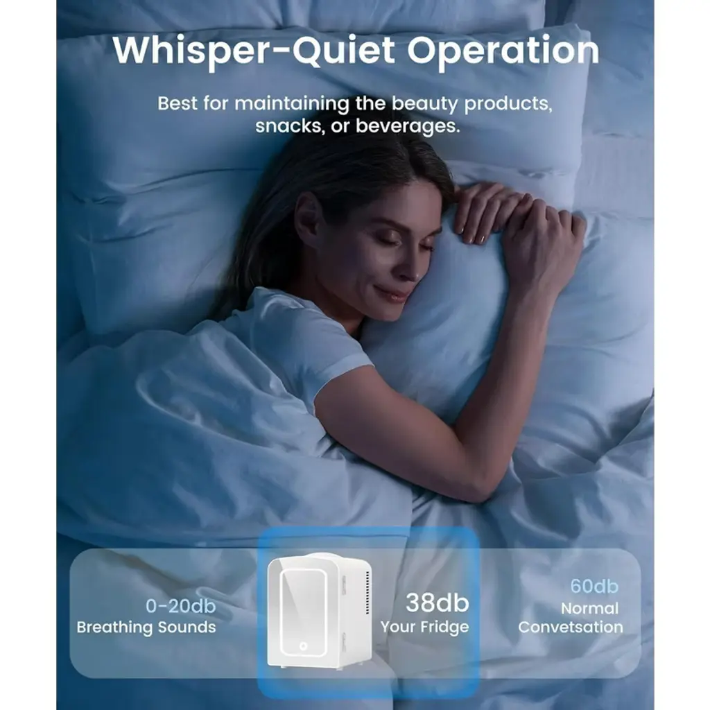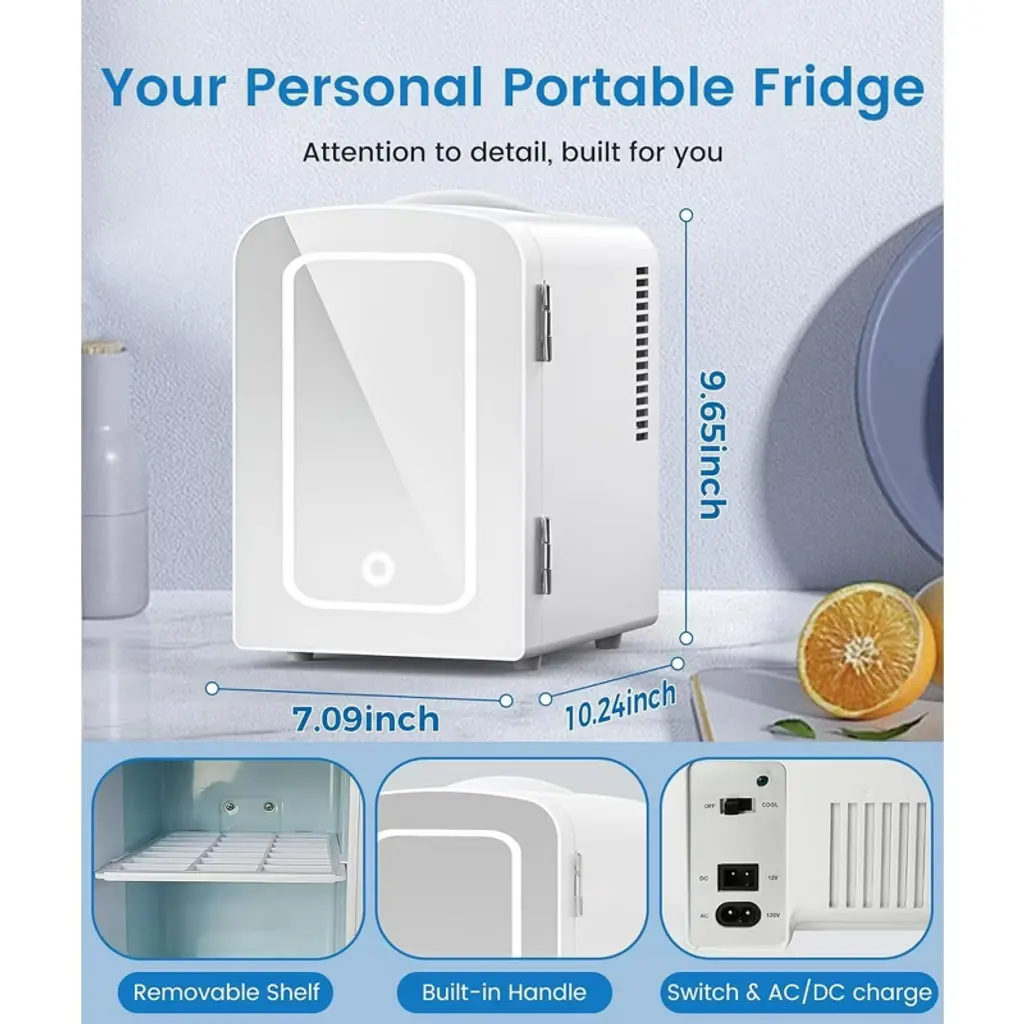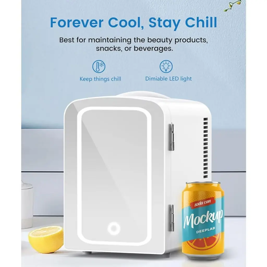 Kismile Mini Fridge With Dimmable Led Mirror, 4L Capacity For Refrigerating Makeup, Skincare And Food & Drink (White)