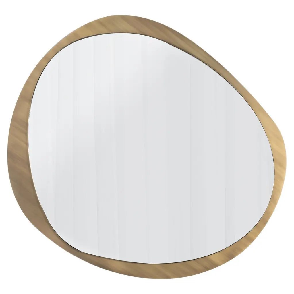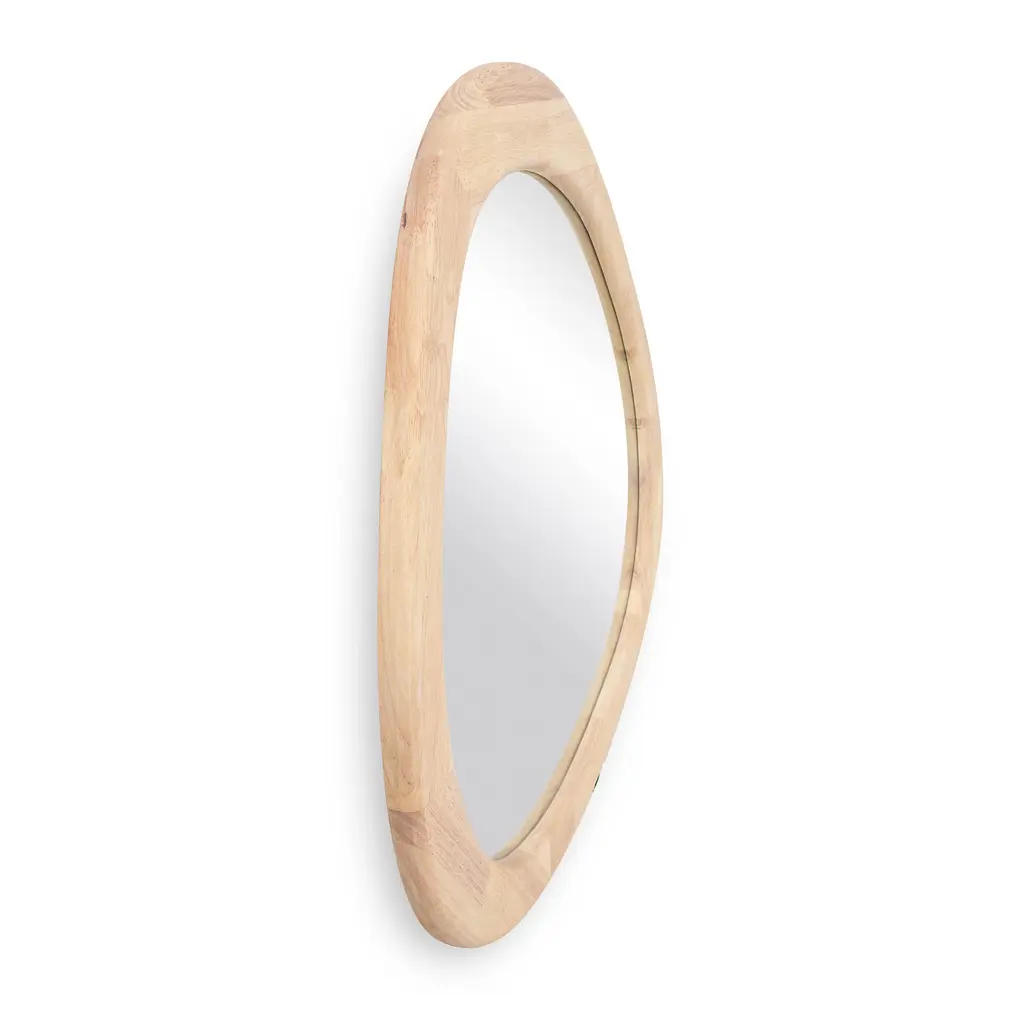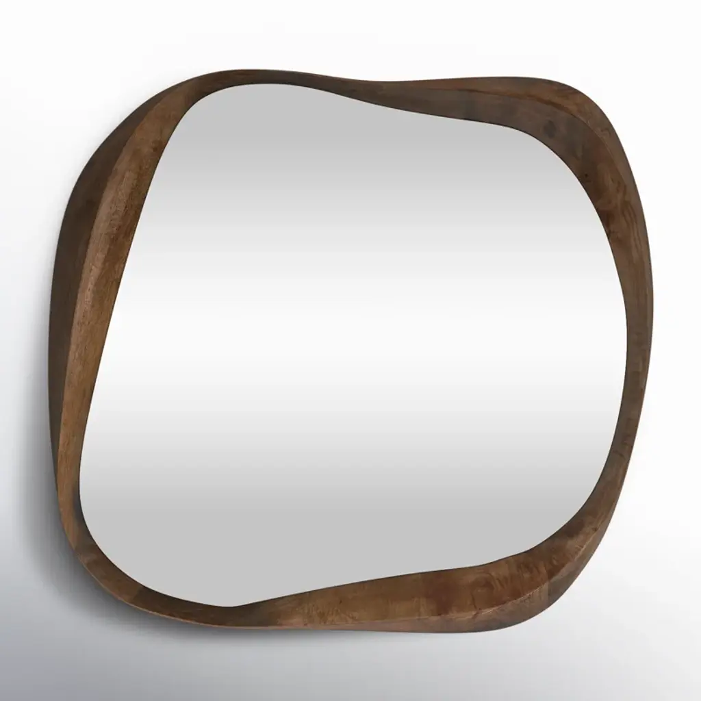 The Klaryss Natural Wood Triangular Mirror embraces the current craze for amorphous natural sculpted aesthetics, making it a must-have statement piece. Available with a natural wood or boucle upholstered frame, this mirror pairs perfectly with a touch of avant-garde flair. Add to the mix the textured, nubby boucle fabric or natural wood, and you've got a mirror that not only reflects but sets a super trendy tone in any space.