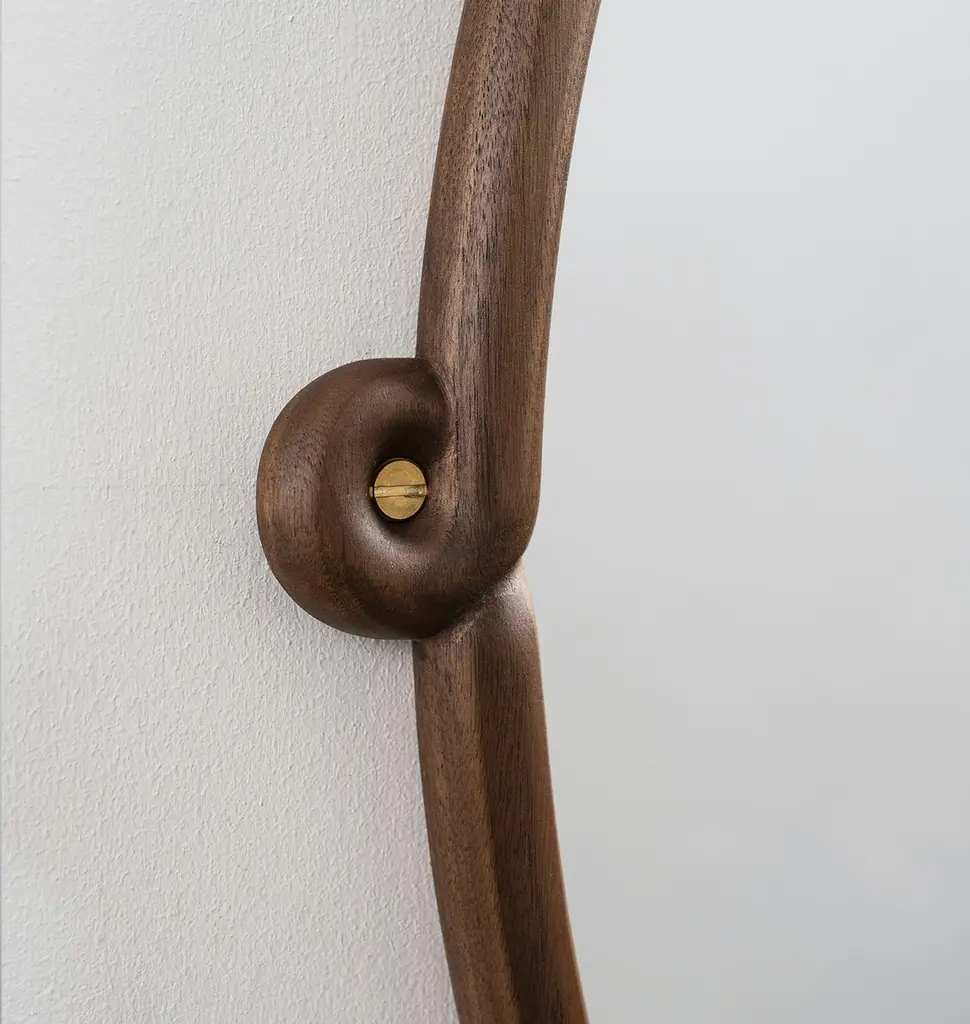 The Knot Mirror (2024) from Roll & Hill is a functional distillation of a concept originally created for New York's prestigious Heller Gallery, where large reflective surfaces were framed and covered with intertwined "vines." Knot uses the smallest detail from those pieces to break free from traditional framing and create a hanging point for the mirror, transforming the utilitarian into the extraordinary. Made in the USA.