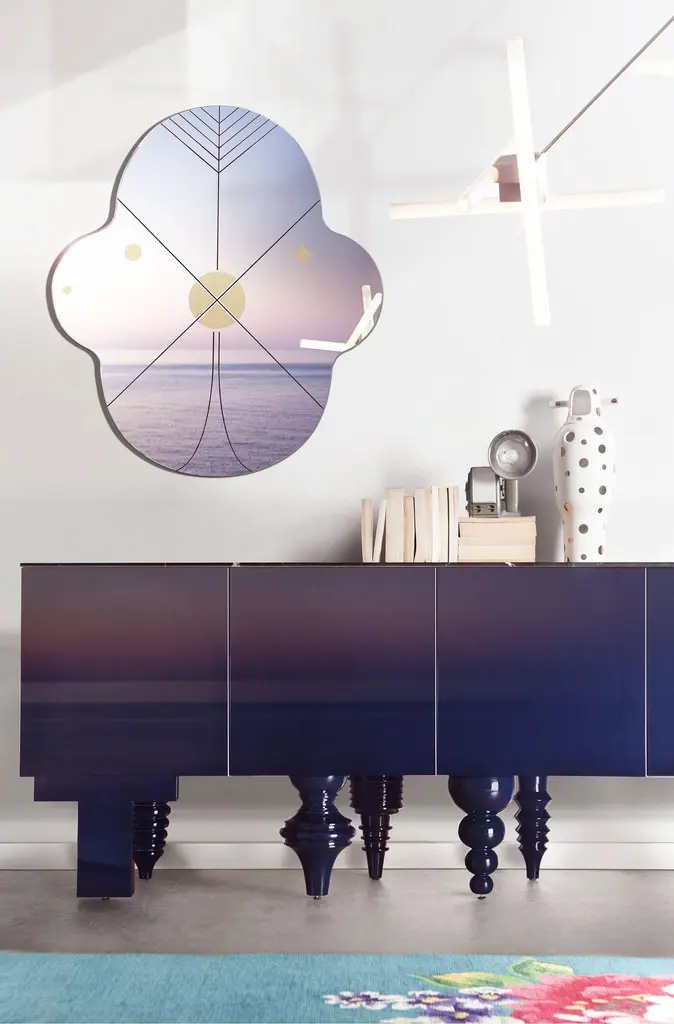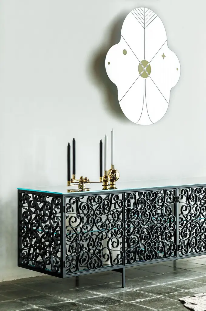 Kong mirror by Jaime HayonDimensions: W 110 x H 120 cm Materials: Mirrors are available in two sizes. Decorative patterns are applied in gold and black. The back of each mirror is covered with black vinyl.Also available in size Small.When we asked Jaime Hayon to design a new mirror for BD, he came up with two proposals. We liked them so much that we decided to produce the both of them. Two faces (King and Kong) in sizes: 90cm and 120cm.In 1972, a group of young architects and designers from Barcelona created BD with the aim of producing and marketing furniture and other objects for our projects, with complete creative freedom and with a criterion that has turned out to be quite different from the norm at companies in the sector, regarding both the shape and function.