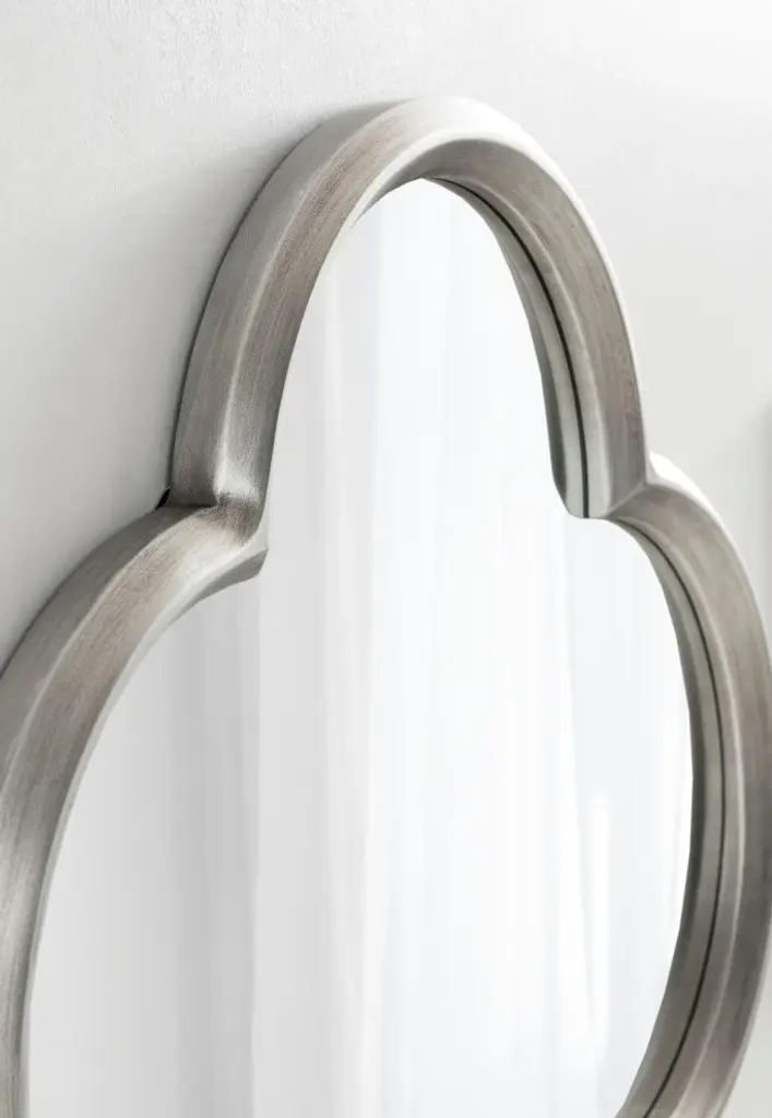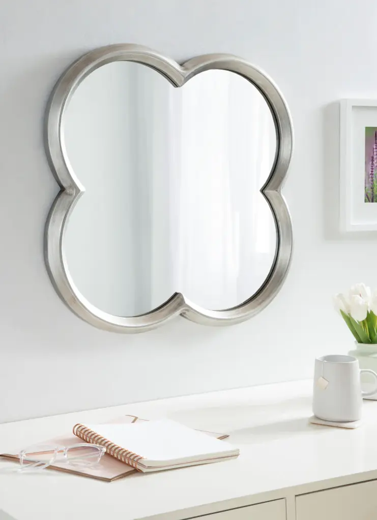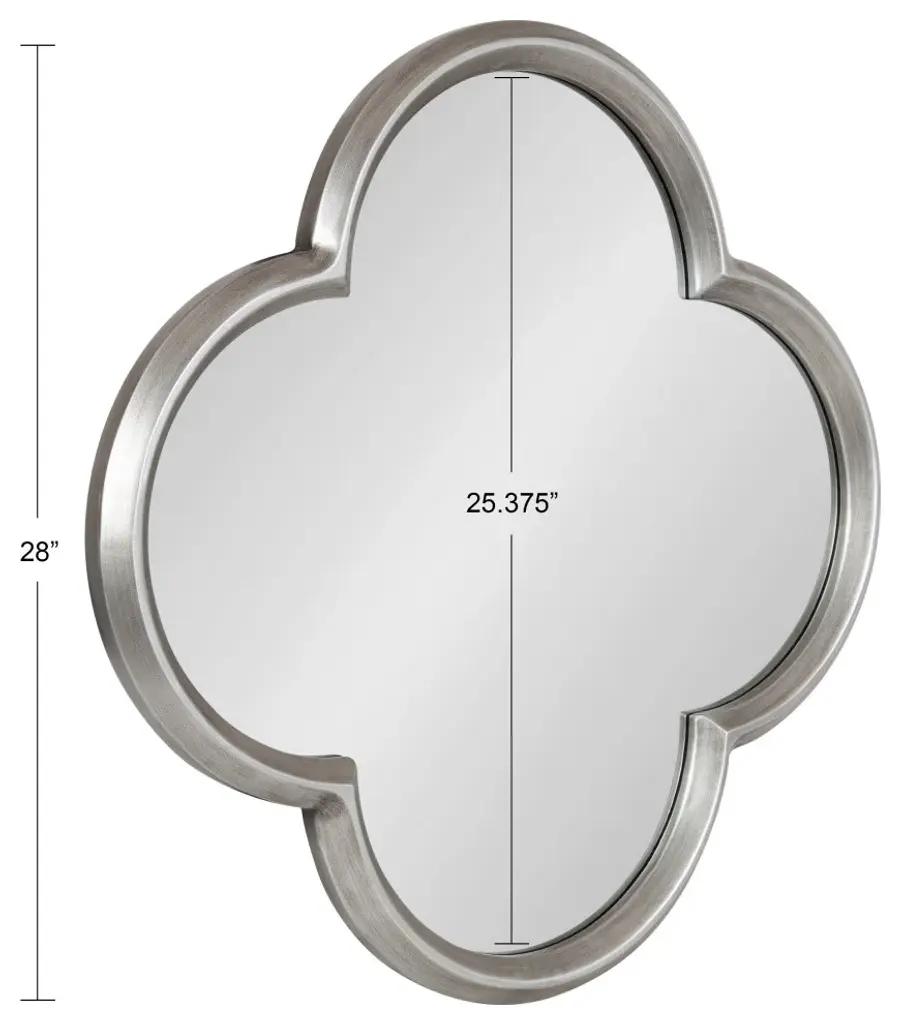 Go the extra mile to make your wall decor stand out with the Krisi wall mirror. Inspired by luxurious and glamorous pieces, the Krisi mirror features a scalloped design along the edge of the frame that creates a clover-inspired shape, making it a joyous and unusual focal point in your home decor. This decorative wall mirror elicits images from traditional, vintage pieces, with an antique silver finish on the frame to give it that retro look. The overall dimensions of the Krisi mirror are 28 inches wide by 1.75 inches deep by 28 inches tall, making it a commanding presence that makes a bold statement in various rooms of the home. Use the beautiful Krisi as bedroom decor above your dresser, in the living room over the mantle, or a stylish console in your entryway. This kind of reflective accent piece enhances the vibrancy of any space, making the room feel more open and dimensional. Use the metal sawtooth hangers attached to the back of the frame for quick and easy installation in a matter of minutes. • IRREGULAR DESIGN: The fabulous Krisi mirror features a scalloped design that creates a clover-inspired shape, making a unique statement that draws the eye and fascinates onlookers• GLAMOROUS FINISH: The Krisi features a traditional antique silver finish that fills the room with warmth and sophistication • LARGE SIZE: Make a bold impression with the Krisi mirror''s large dimensions, measuring 28 inches wide by 1.75 inches deep by 28 inches tall for a dimensional and striking focal point• VERSATILE: Use this large clover-shaped mirror as a unique bathroom mirror or as a decorative accent mirror in your living room, bedroom, entryway, or dining room• EASY TO HANG: Metal sawtooth hangers are attached to the back of the Krisi wall mirror for quick and easy installation in a matter of minutes