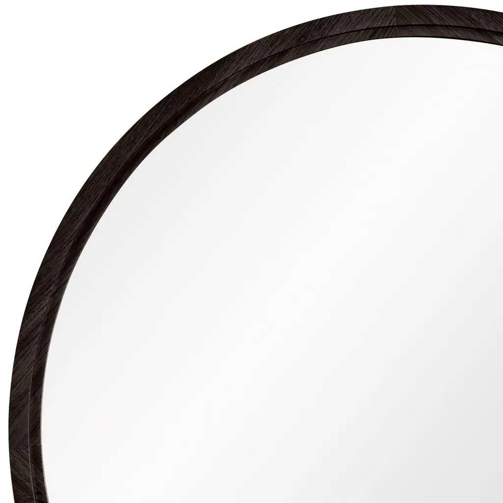 The Kuba Oak mirror features a solid oak frame with a channeled detail running through the center. The finish combines the beauty of natural oak wood with a textured finish achieved through a wirebrushing technique that showcases the depth and character of the wood grain.