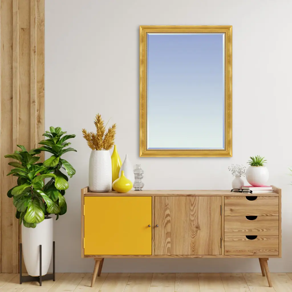 Inspired by the lavish styles of 18th century Italian royalty, this frame embodies an unmatched sense of luxury. With a shimmering gold finish, sturdy wood construction, and fine detailing along the inner and outer edges, it''s an easy choice for an elegantly beveled mirror.