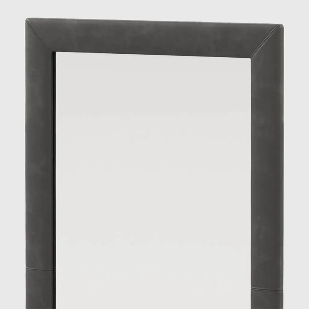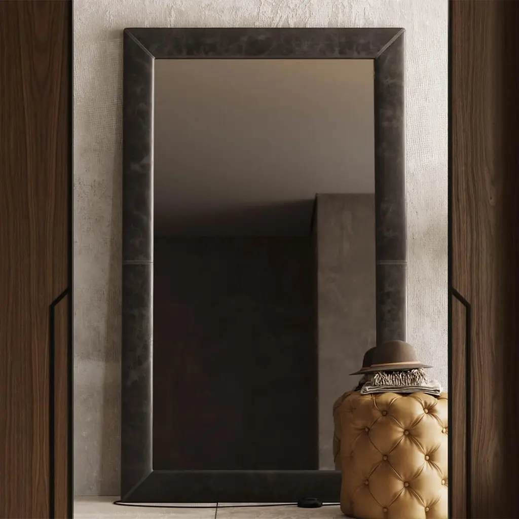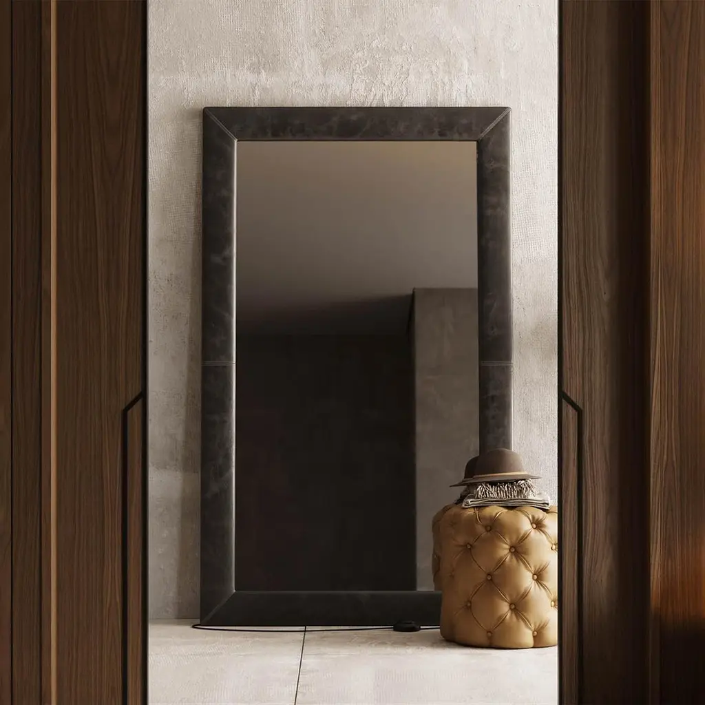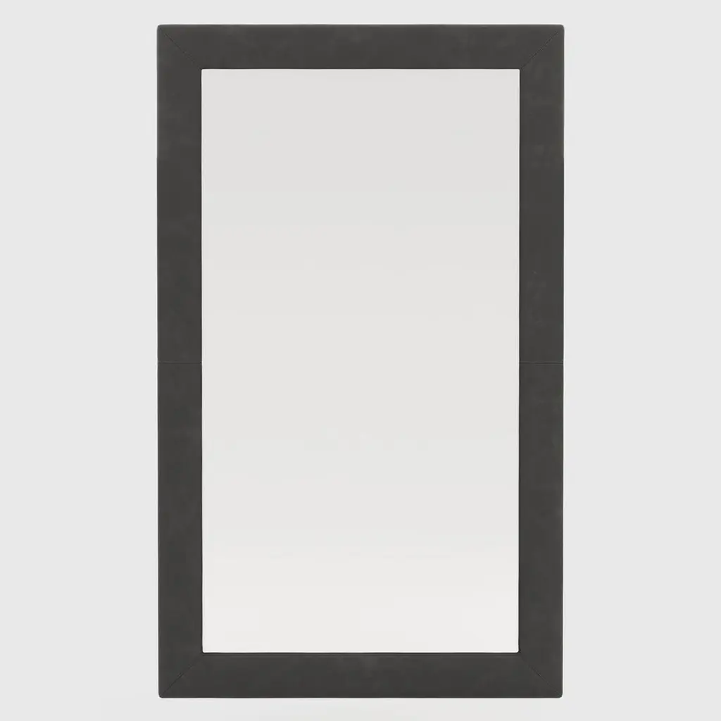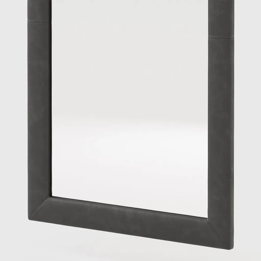 Mirror Lagun with frame in solid wood coveredwith natural genuine dark grey leather, Cat 3.With rectangular mirror glass.Also available with other leathers color on request.