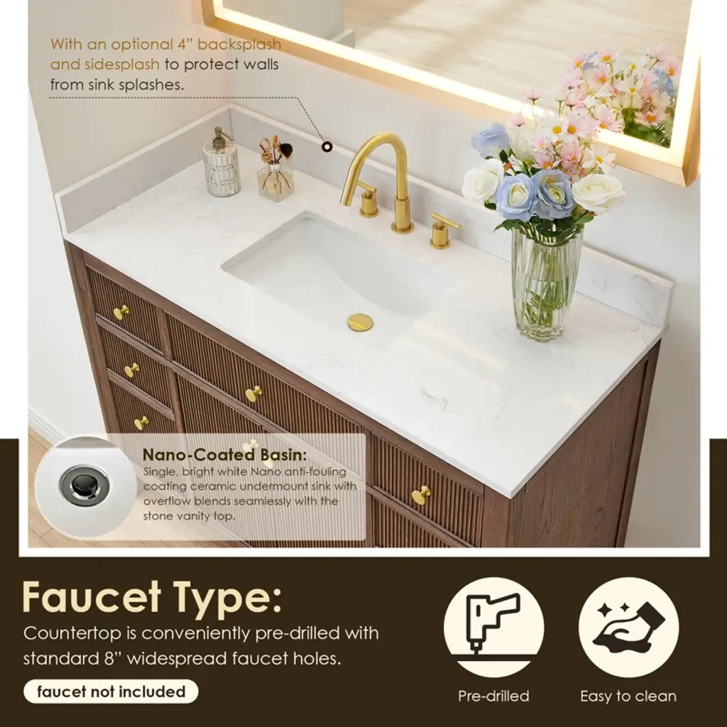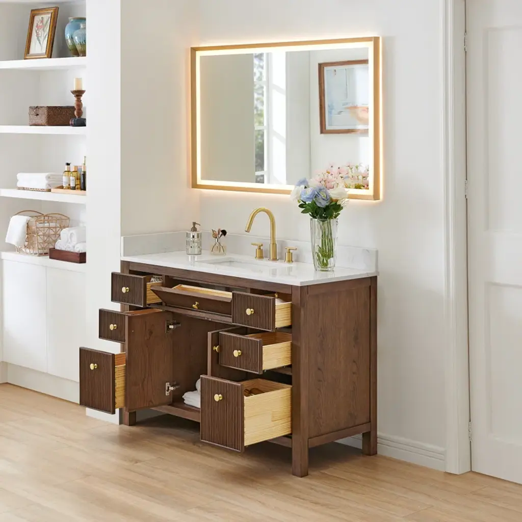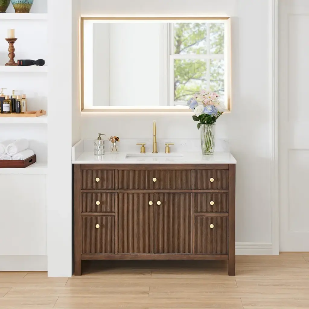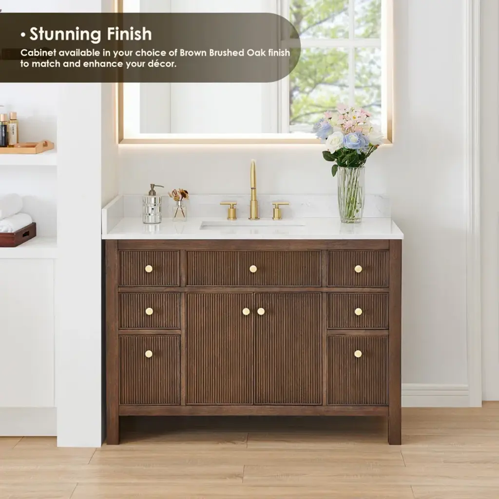 Lala 48" Single Bathroom Vanity With Grain White Engineered Stone Countertop With Mirror
