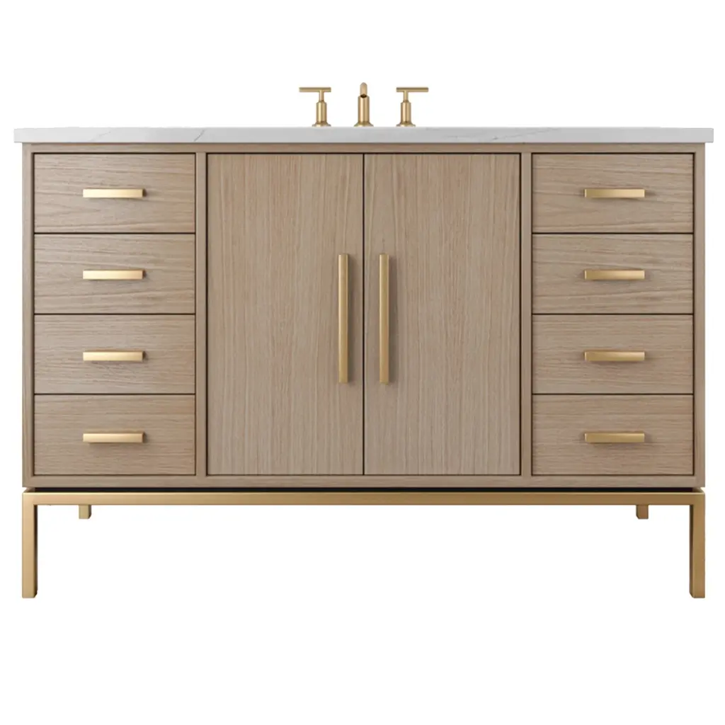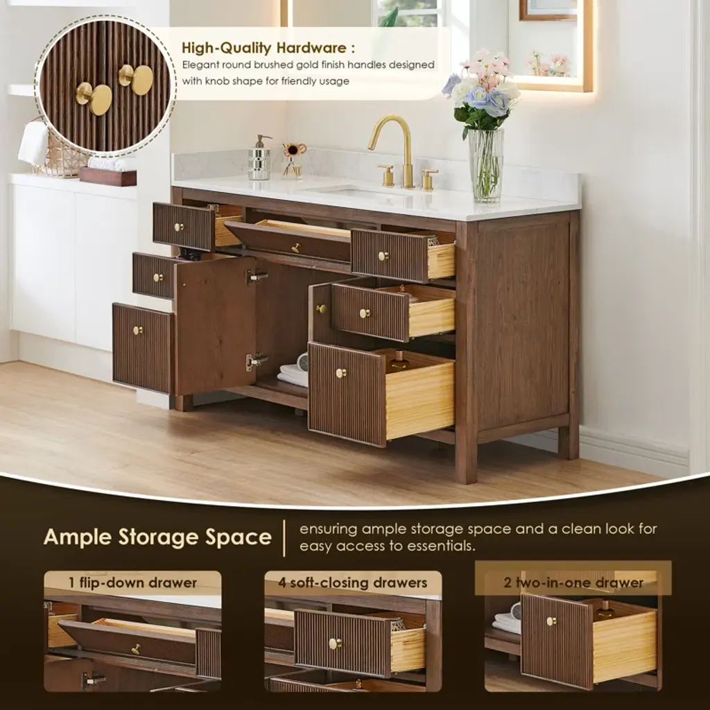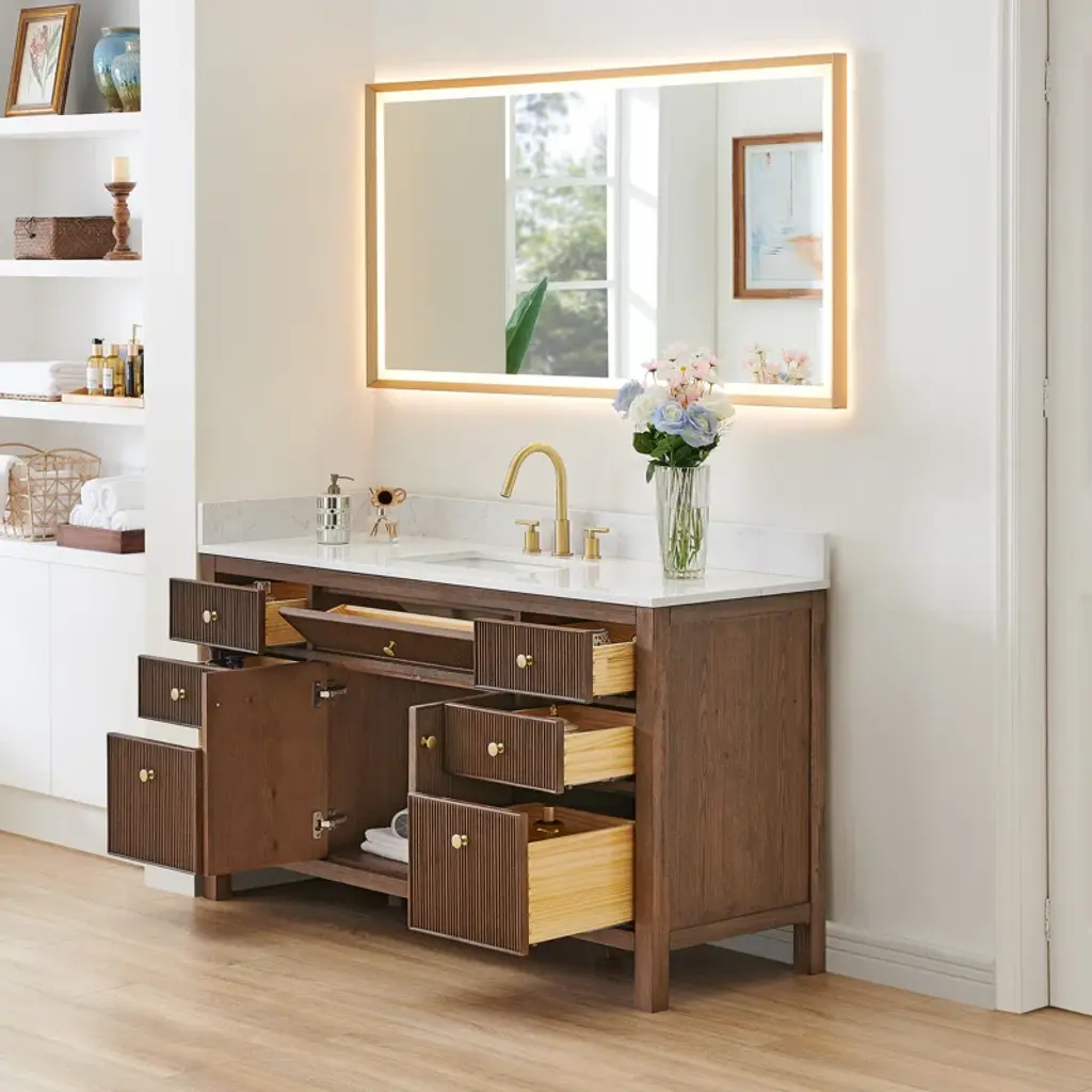 Lala 60" Single Bathroom Vanity With Grain White Engineered Stone Countertop With Mirror