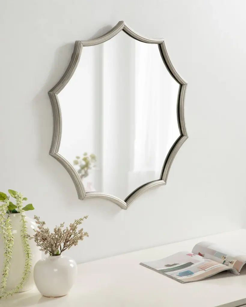The bold and exciting Lalina mirror brings a dazzling focal point to any wall space in your home. Inspired by vintage glamour and updated for the 21st century home, the Lalina mirror features a round shape with a scalloped edge, drawing you in while creating a bursting effect on your wall. Embrace maximalism with the large, 24-inch diameter, commanding attention and drawing focus in any space you decide to hang it. Use this mirror as a beautiful statement piece over a console, on your mantle, or in your bedroom. It''s large size also lends itself well to acting as an elegant bathroom vanity mirror. Adding a mirror like the Lalina to your wall decor emphasizes the light and dimension already in your space, making it feel more open and vibrant. Each Lalina wall mirror features a metal hanger attached to the back of the protective MDF back, providing a resilient and easy installation process that takes a matter of minutes. • BOLD DESIGN: The Lalina mirror features a glamorous, scalloped design with a round shape and an antique silver finish, creating a look that leaps off the wall with energy and grace• QUALITY MATERIAL: The frame of the beautiful Lalina is rich and robust, making it as resilient as it is elegant• LARGE SIZE: This bold accent mirror has a 24-inch diameter, making it a commanding focal point that draws the eye and wows your guests• VERSATILE: Use the Lalina mirror as a stunning bathroom vanity mirror or as a dazzling statement piece in your living room, bedroom, or entryway• EASY TO HANG: Use the hanger attached to the back of the Lalina for quick and easy installation in a matter of minutes