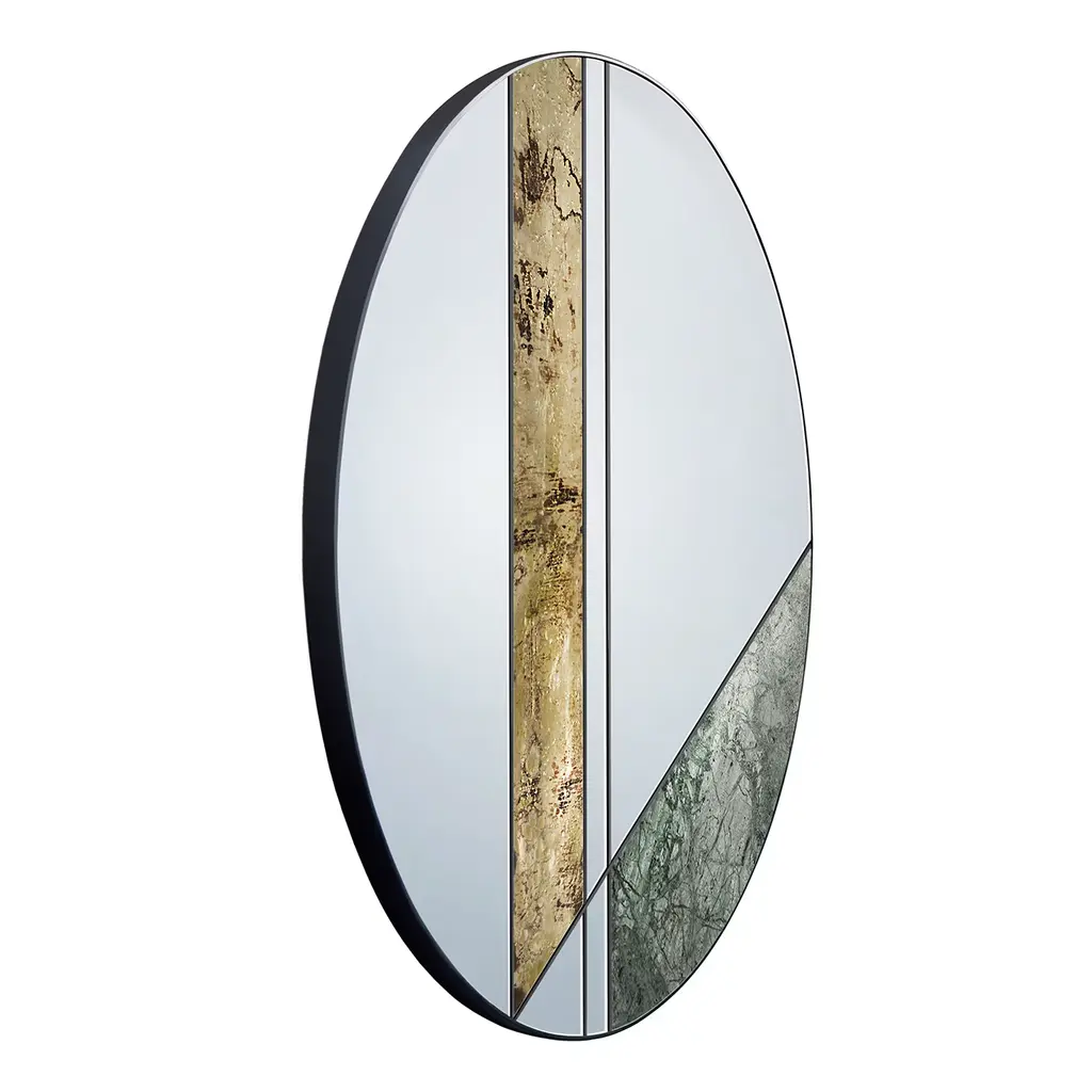 A refined play of slopes and inclined planes that intersect and cut each other characterize this mirror with a dynamic and futuristic design. The care in the realization and the research of the finest materials represent the distinctive feature of this mirror, which will enrich any environment with its precious uniqueness.