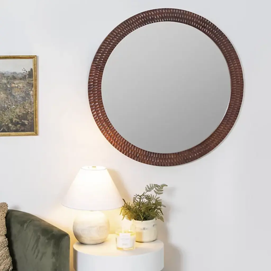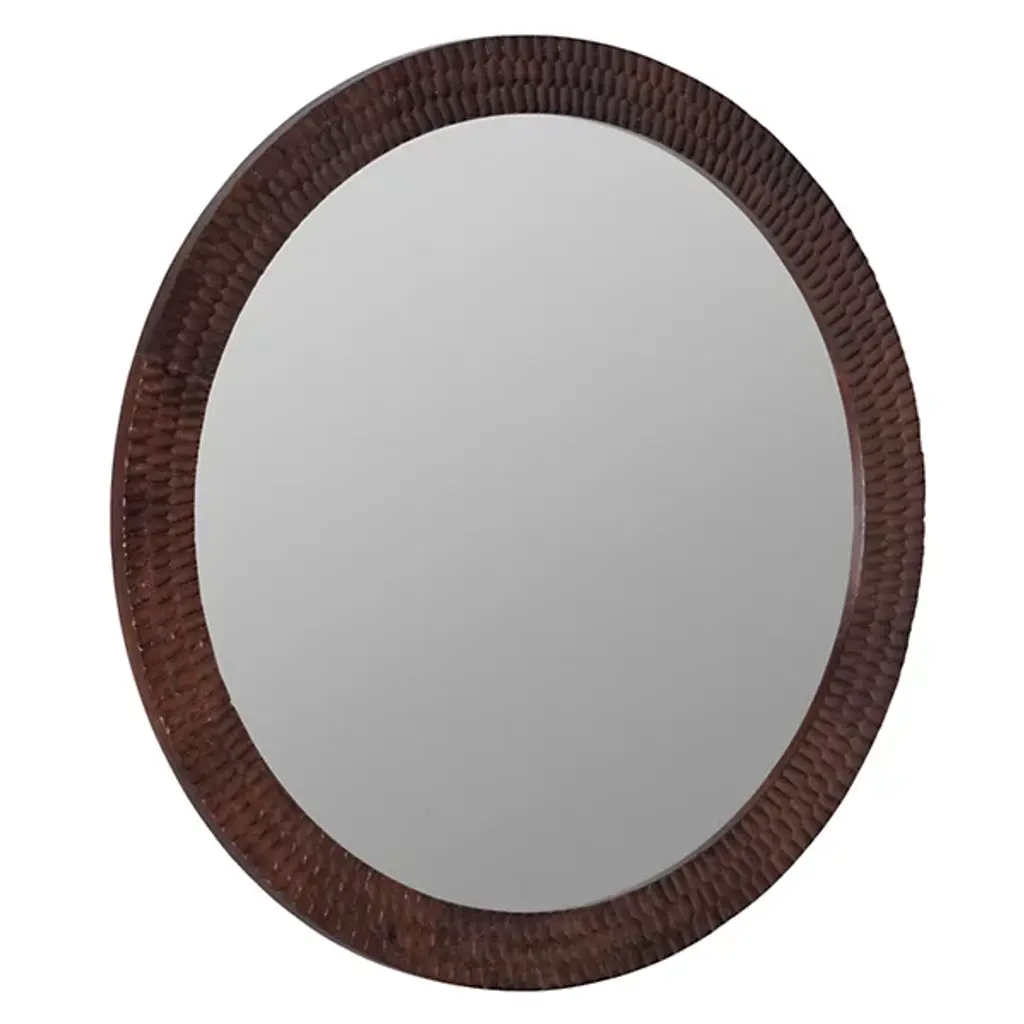 The Lanie Wall Mirror from Cooper Classics combines organic warmth with modern simplicity. The round mango wood frame features an artful cutaway detail that adds organic interest to its clean silhouette. This refined piece celebrates the natural beauty of wood grain while bringing contemporary sophistication to any wall space it adorns.