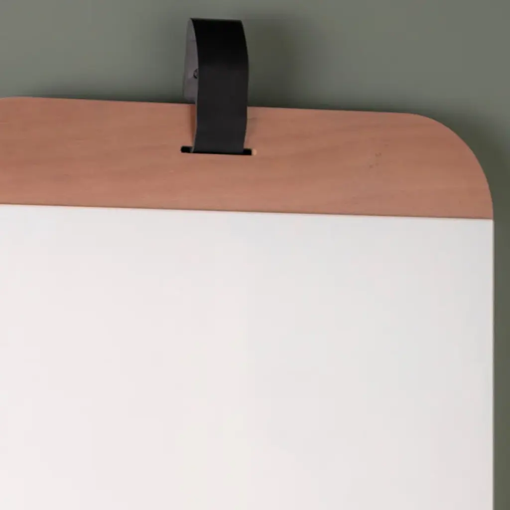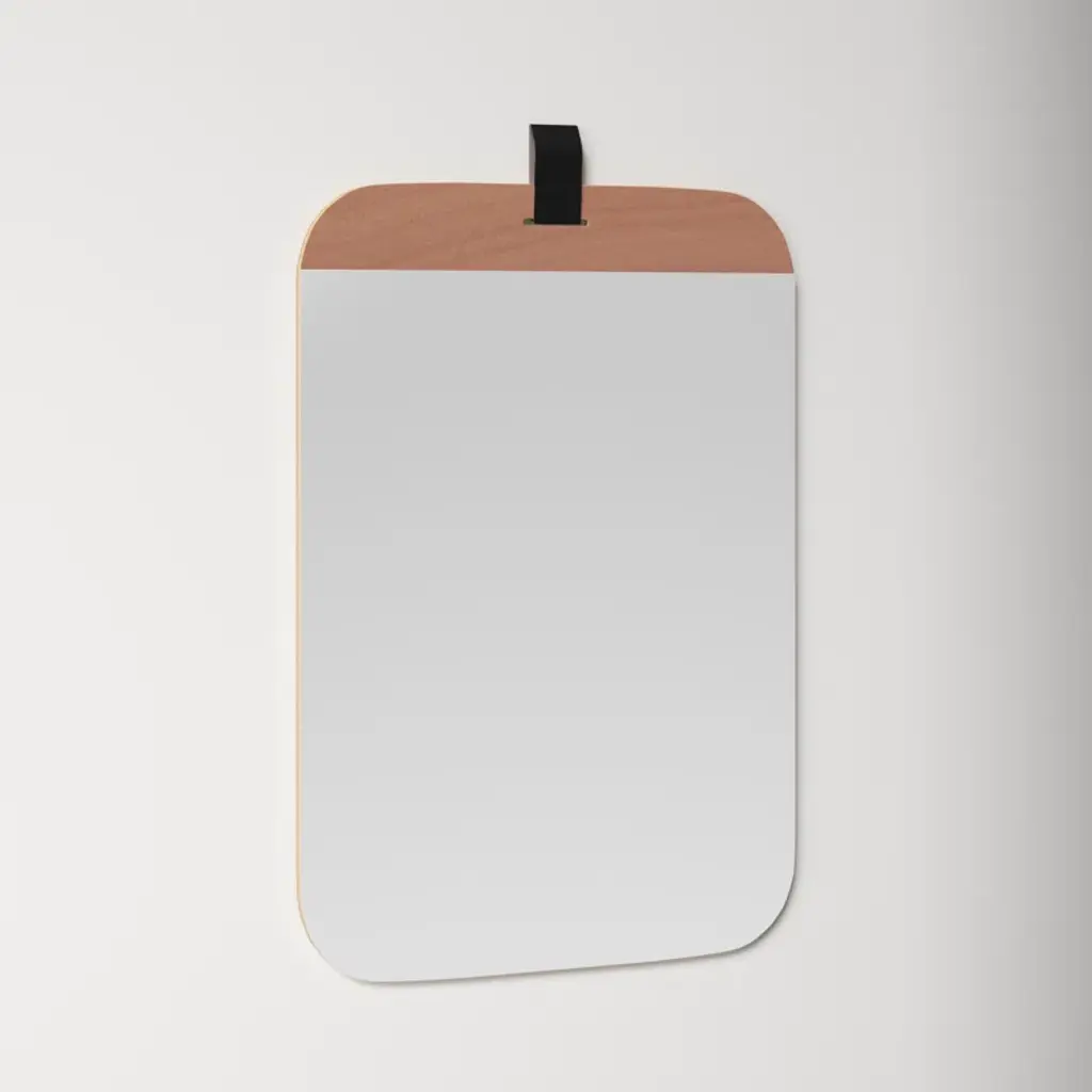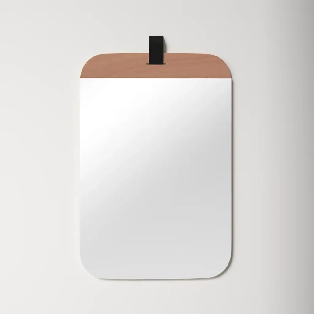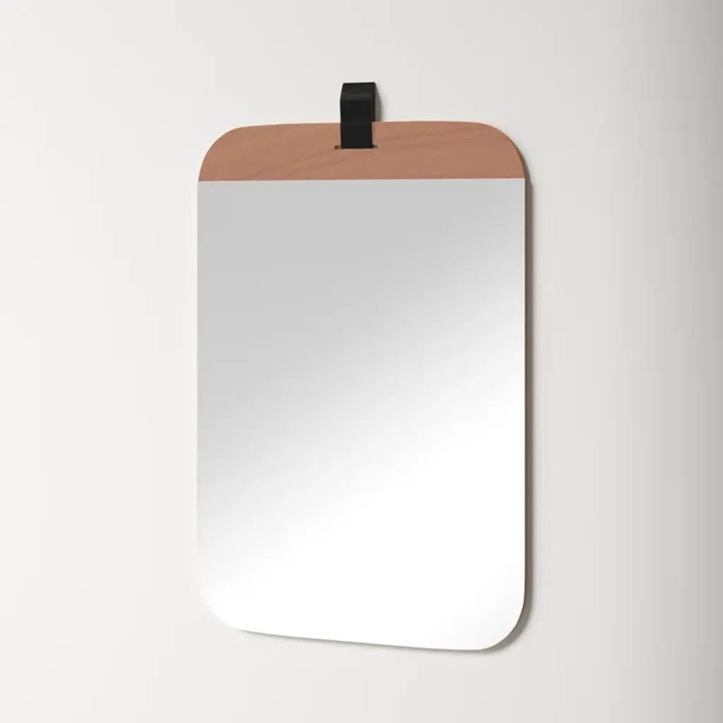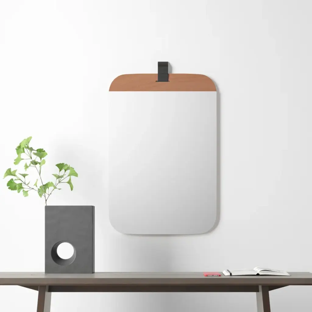 With an eye for modern minimalism and a space-conscious footprint, this sleek mirror layers a bright design onto your walls. Crafted with a wood frame, it features a clean-lined rectangular silhouette with rounded edges. A single band of brown wood lines the top of the mirror, where a hanging hook attaches it to your walls. The glass itself is made from non-beveled glass for a clean reflection. At 36'' high and 24'' wide, this mirror is sized to fit everywhere from bathroom vanities to bedroom walls. Hanging hooks and straps are included.