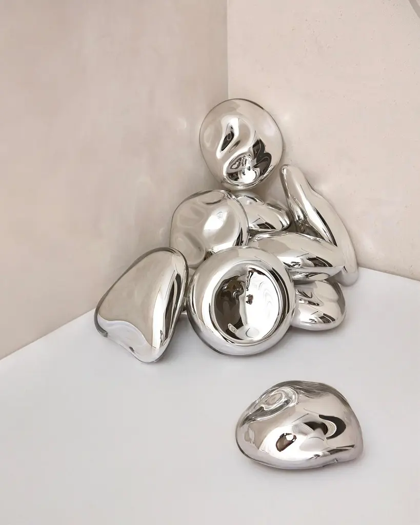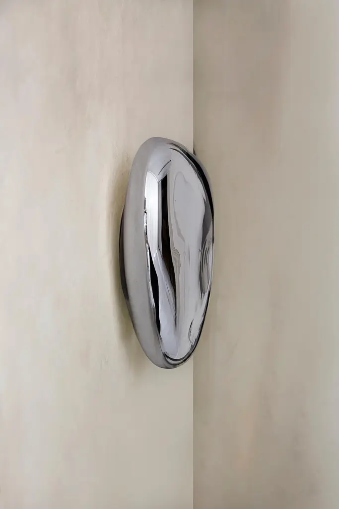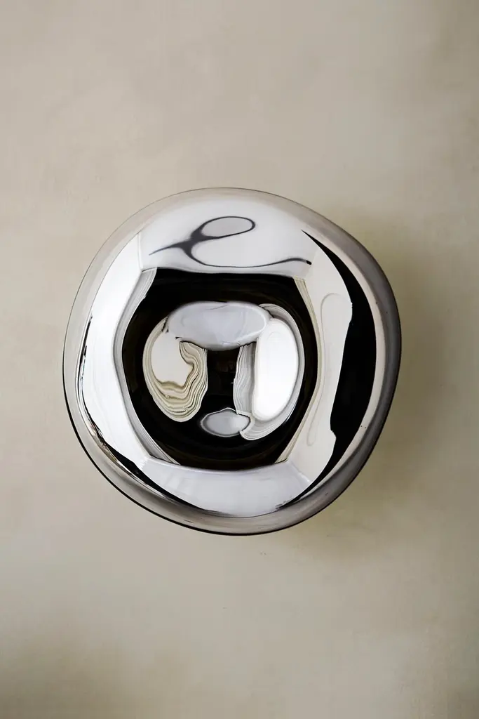 Lapis 2 Sculptural Silver Mirror With Handblown Glass By Homa