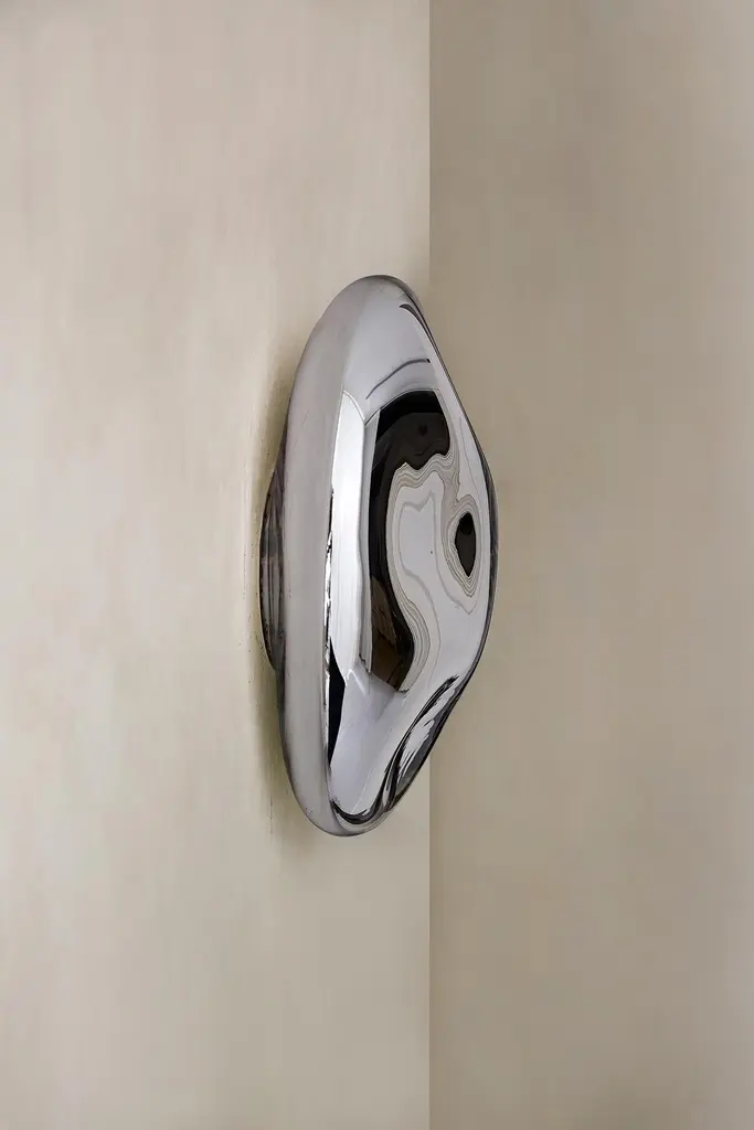 Lapis 22 Sculptural Silver Mirror With Handblown Glass By Homa