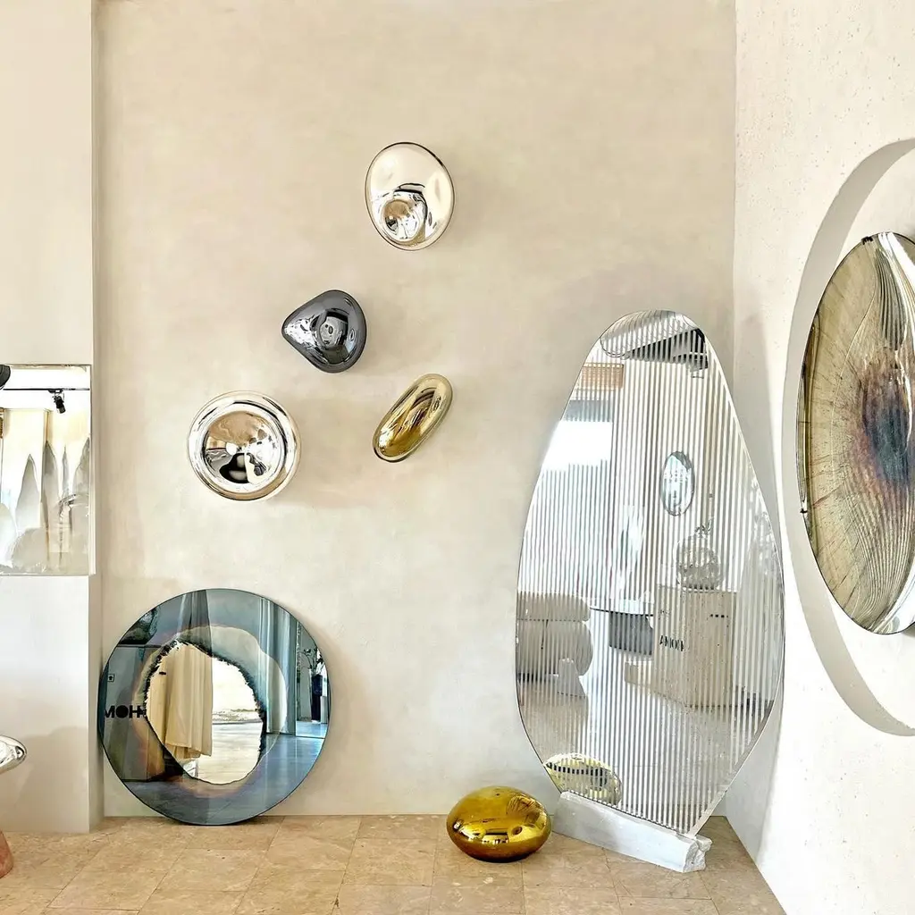 Lapis 23 Sculptural Silver Mirror with Handblown Glass by HomaDimensions: W 32 x D 15 x H 33 cmMaterials: Blown Glass. Silver Mirror.HOMA is a contemporary design atelier based in Istanbul. The atelier’s trademark processes are handblown glass, glass fusing and mirroring, created through the use of multidisciplinary techniques and materials. Over time, with meticulous research and experimentation HOMA has acquired unique expertise in mirrors, lighting and home interior objects thus elevating things of function to the status of art. Handcraft HOMA has discovered one of the last remaining masters of handcrafted mirroring in the Eastern Mediterranean. The atelier is original in its simultaneous use of different techniques to create organic and flowing mirror shapes. Each piece celebrates reflection, translucency, movement, light, time, multiple layering and aesthetic, spontaneity…Object HOMA’s pieces are an exploration of organic, abstract, as well as unexpected flowing lines and shapes. Our design service offer is presented in a catalogue of over 50 designs in fluid and geometric shapes achieved through multidisciplinary techniques.Materiality Through the use of mixed textures and the layering of mirror elements unexpected effects are created on glass, which play with one’s visual perception as well as the surrounding space. Glass, stone, marble, messing mirror techniques, bronze, wood and clay are just some of the Earth’s materials that find their way into HOMA’S offerings. HOMA offers a vast materials library.Architecture Formally trained in interior architecture, HOMA founder, Tuğba Koç has transformed her knowledge and experience into layered aesthetic design objects. Now, with a team of architects and artisans, Tuğba applies her hands in a workshop environment on interior and exterior objects to enrich earth-derived, breathing, living materials. HOMA’s interior objects are informed by art and driven by the philosophy that nothing artificial should be allowed to interfere with the energy of one’s living environment.