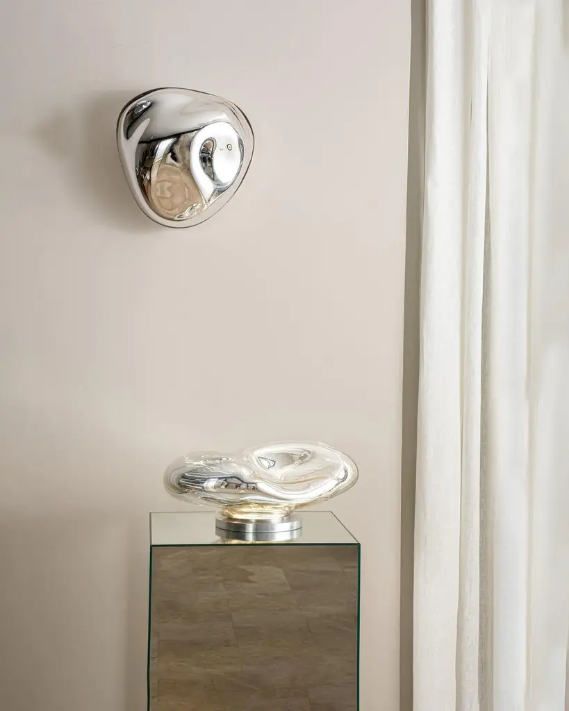 Lapis 5 Sculptural Silver Mirror with Handblown Glass by HomaDimensions: W 40 x D 20 x H 40 cmMaterials: Blown Glass. Silver Mirror.HOMA is a contemporary design atelier based in Istanbul. The atelier’s trademark processes are handblown glass, glass fusing and mirroring, created through the use of multidisciplinary techniques and materials. Over time, with meticulous research and experimentation HOMA has acquired unique expertise in mirrors, lighting and home interior objects thus elevating things of function to the status of art. Handcraft HOMA has discovered one of the last remaining masters of handcrafted mirroring in the Eastern Mediterranean. The atelier is original in its simultaneous use of different techniques to create organic and flowing mirror shapes. Each piece celebrates reflection, translucency, movement, light, time, multiple layering and aesthetic, spontaneity…Object HOMA’s pieces are an exploration of organic, abstract, as well as unexpected flowing lines and shapes. Our design service offer is presented in a catalogue of over 50 designs in fluid and geometric shapes achieved through multidisciplinary techniques.Materiality Through the use of mixed textures and the layering of mirror elements unexpected effects are created on glass, which play with one’s visual perception as well as the surrounding space. Glass, stone, marble, messing mirror techniques, bronze, wood and clay are just some of the Earth’s materials that find their way into HOMA’S offerings. HOMA offers a vast materials library.Architecture Formally trained in interior architecture, HOMA founder, Tuğba Koç has transformed her knowledge and experience into layered aesthetic design objects. Now, with a team of architects and artisans, Tuğba applies her hands in a workshop environment on interior and exterior objects to enrich earth-derived, breathing, living materials. HOMA’s interior objects are informed by art and driven by the philosophy that nothing artificial should be allowed to interfere with the energy of one’s living environment.