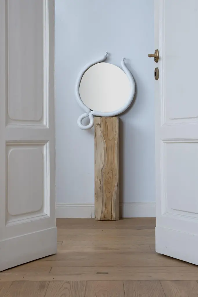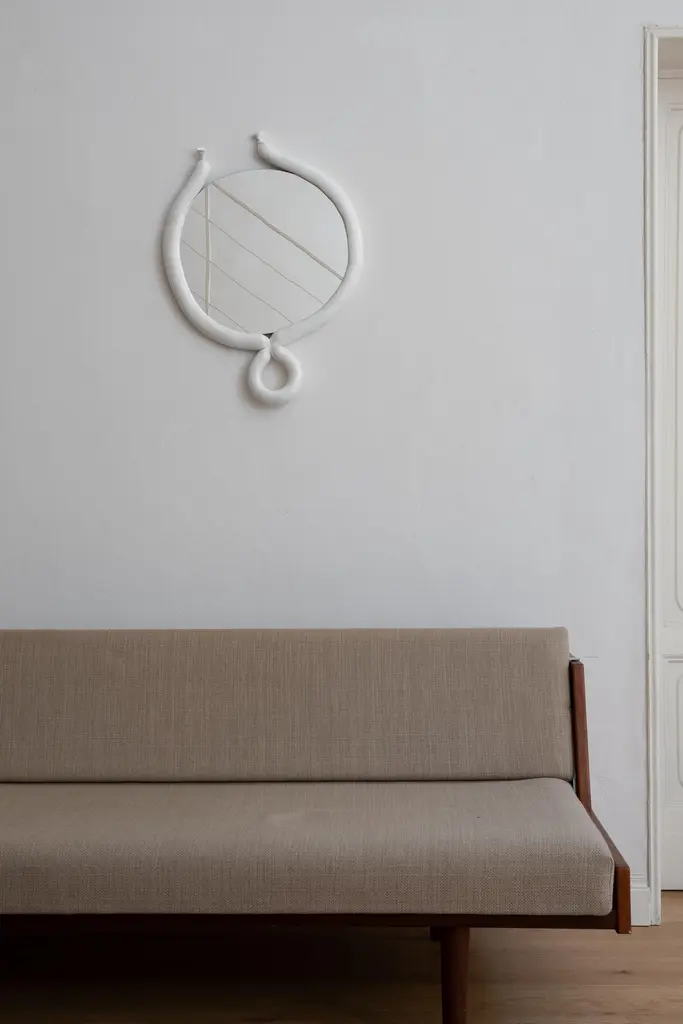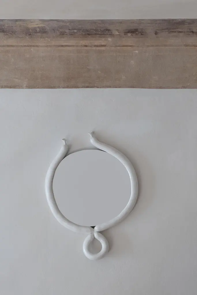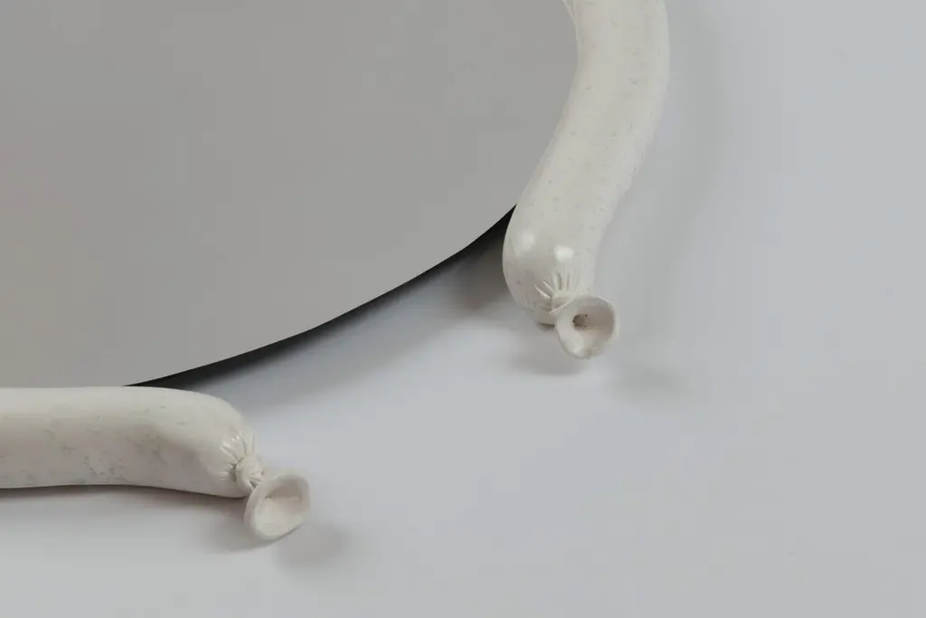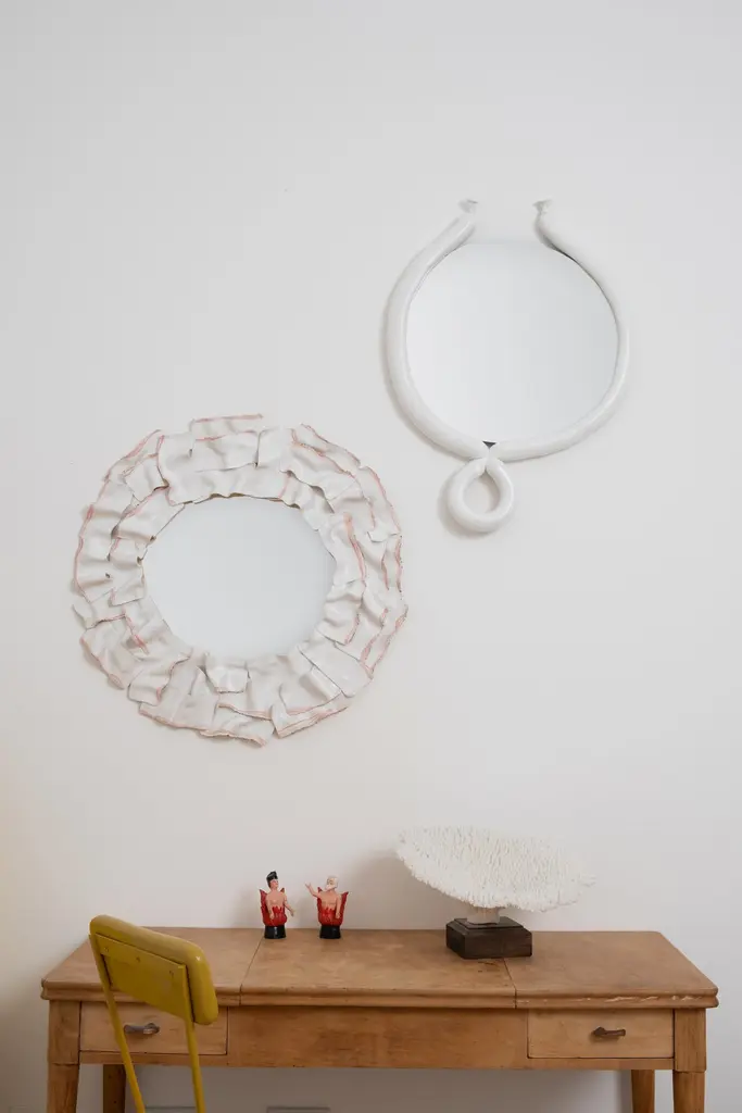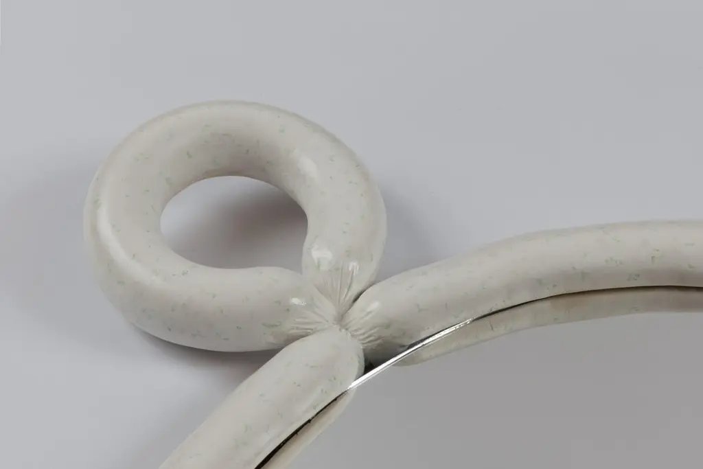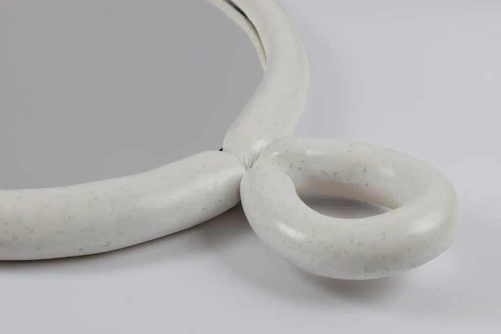 Affettati mirrors “LARDO” by Nicole ValentiNIVA design presents the “Affettati Mirrors” collection by reinterpreting the mirror in a contemporary and provocative way, creating a line of ceramic frames in a mix of tradition and innovation.Inspiration from the classic Meissen porcelain frames of the early 1700s’ is combined with thin slices of mortadella ham rolled up like Flemish collars.The mirror conventionally symbolic of vanity is downplayed to remind us that sometimes we should not take ourselves too seriously and that only irony can save us and show us who we are!Each piece is handmade and hand-painted in Italy in collaboration with master craftsmen.Nicole Valenti is an Italian artist and designer based in Florence and living worldwide.