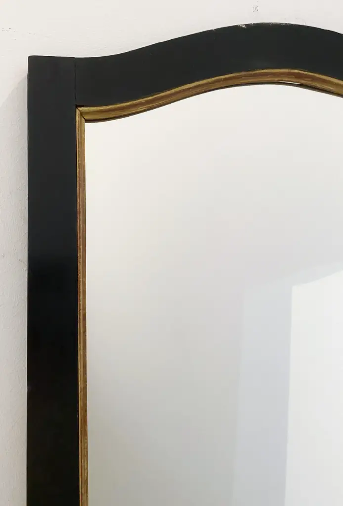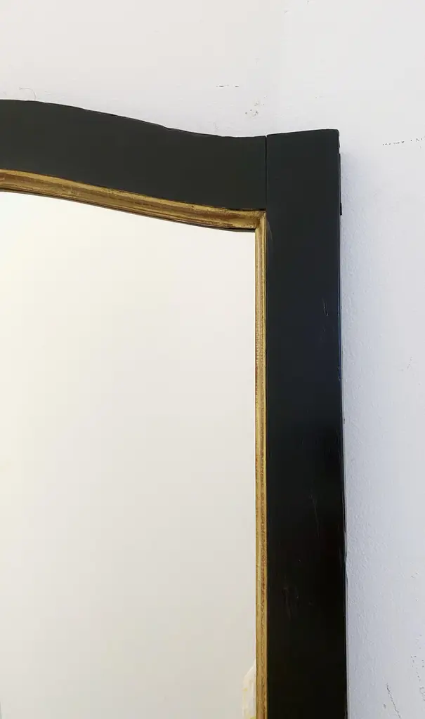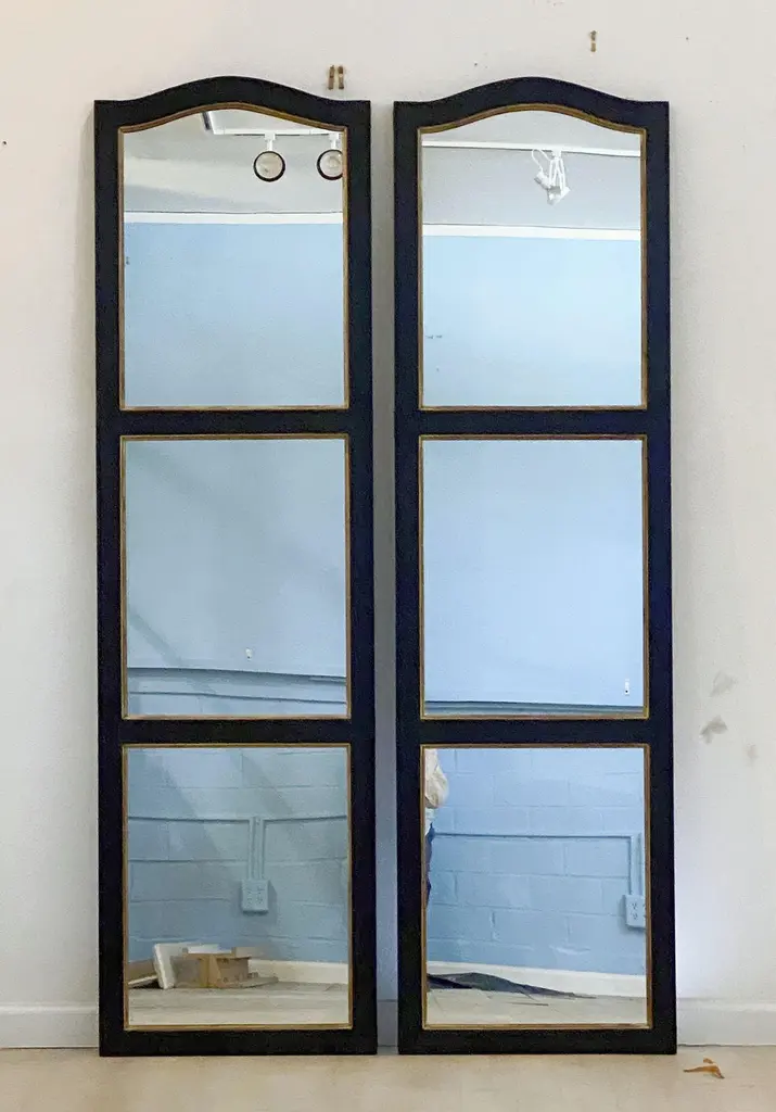 Large Black And Gilt Window Pane Paneled Mirrors (Each H 74 X W 20 7/8)