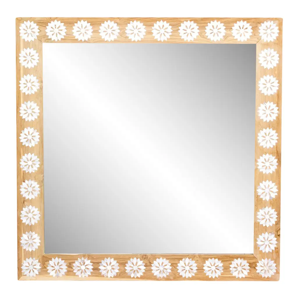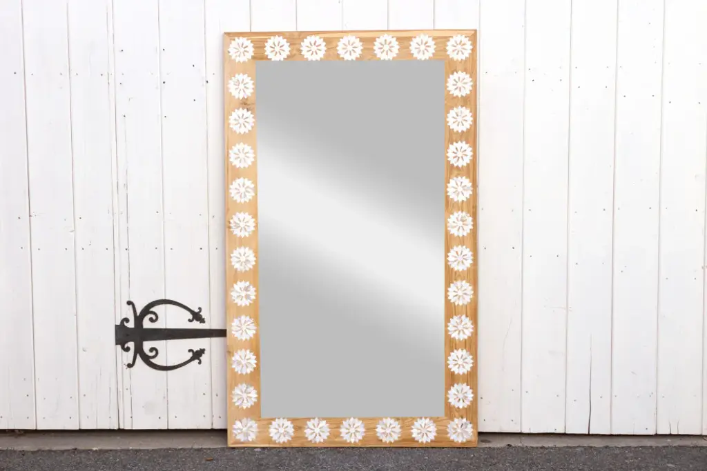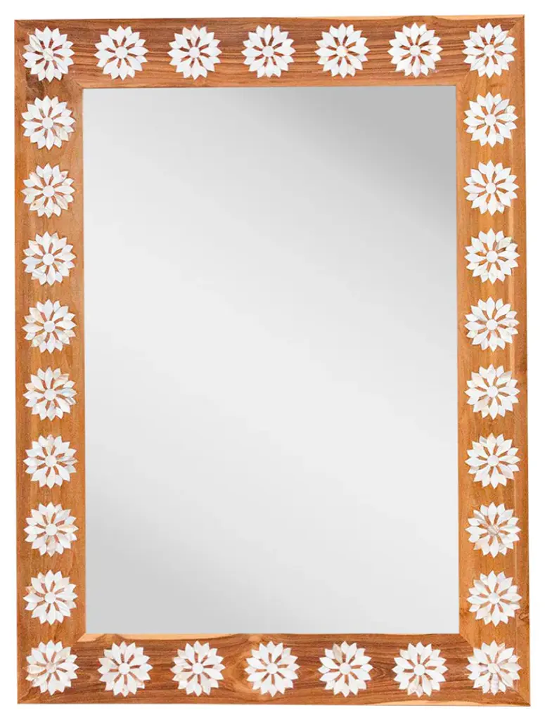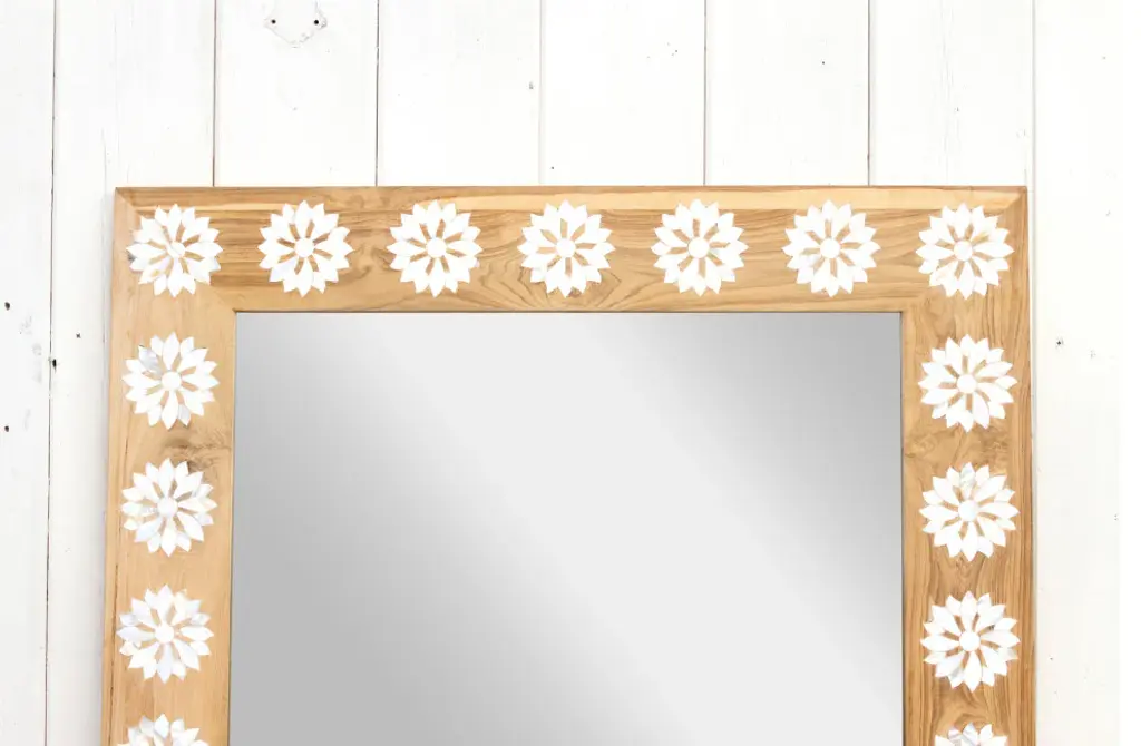 Large Bleached Teak Blossom Mother Of Pearl Mirror