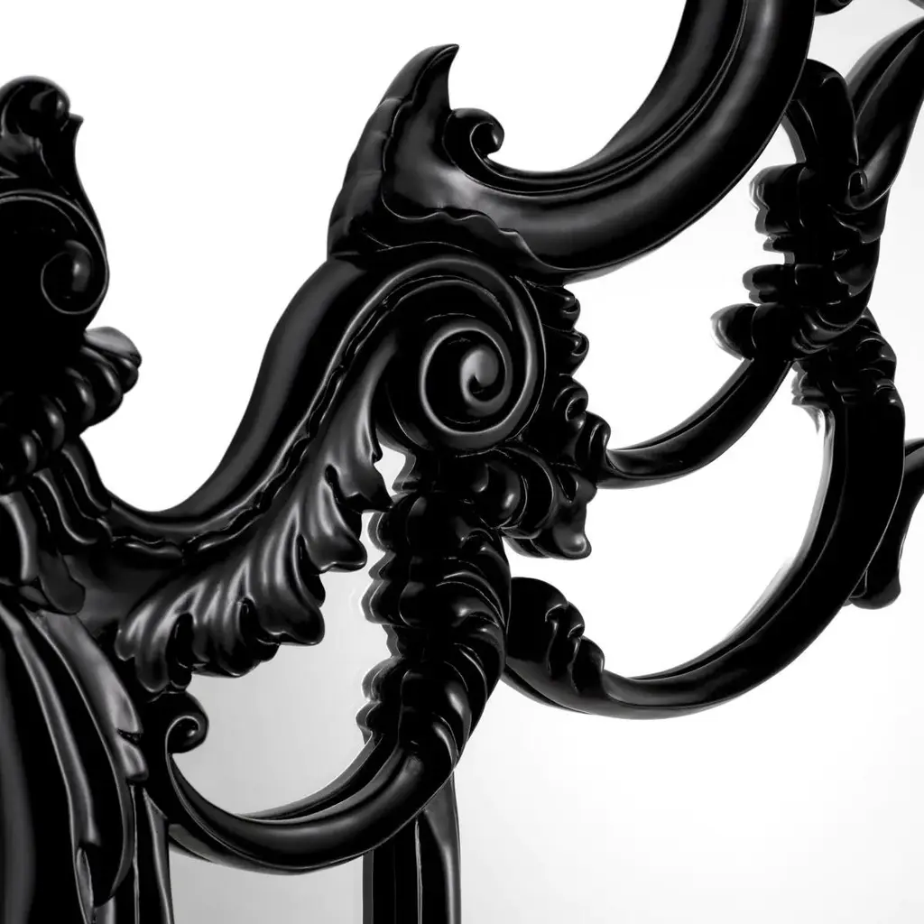Large Chippendale Mirror, Carved Black Lacquered Wood, Bevelled Mirror.