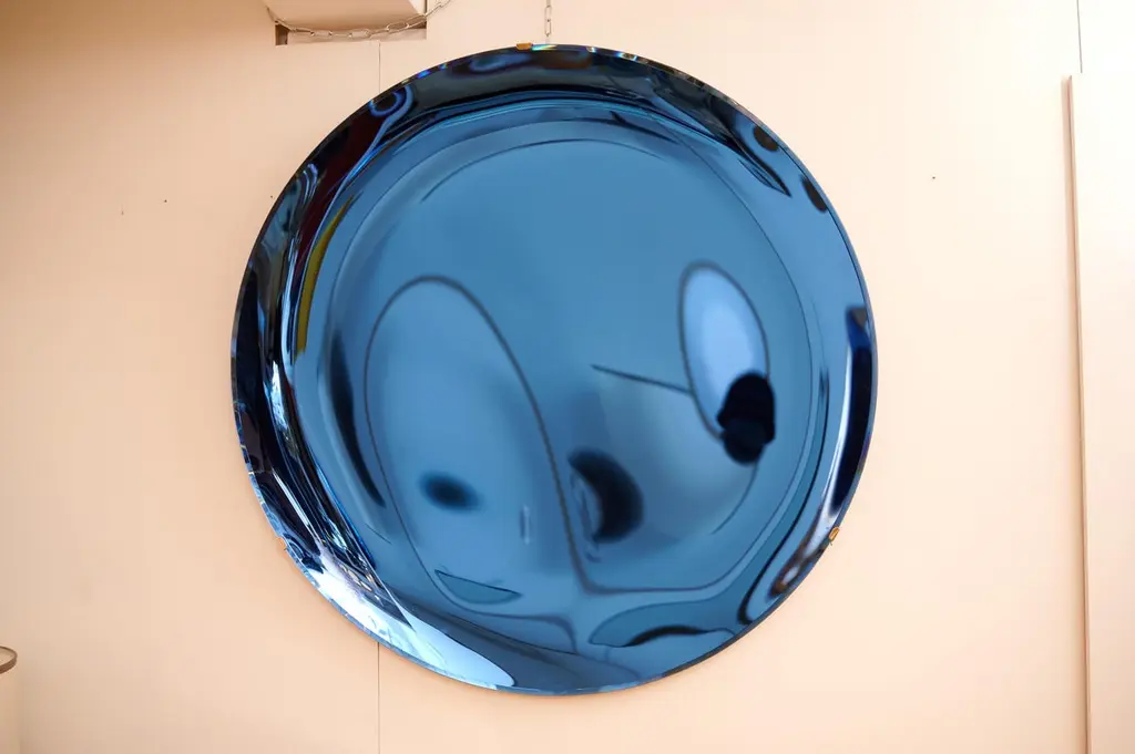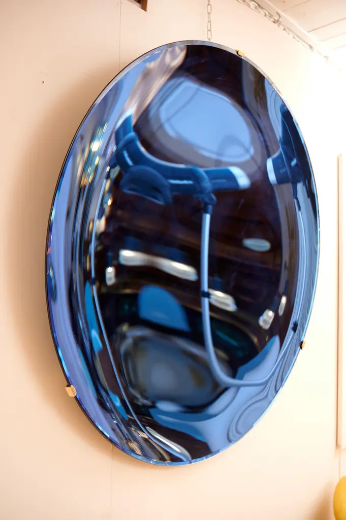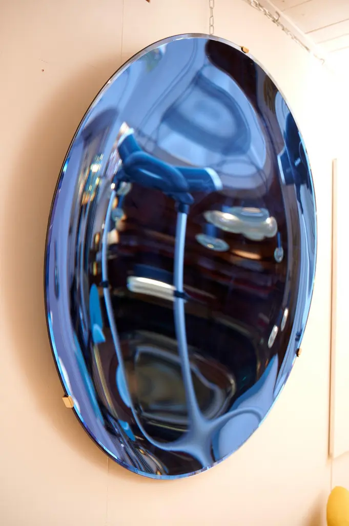 Large Concave Blue Mirror Sculpture