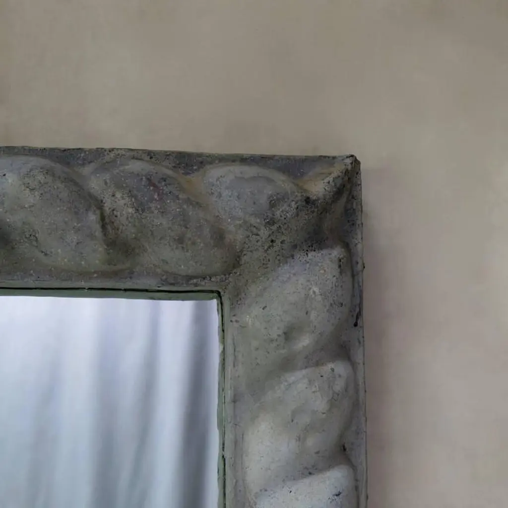 Large square frames made using antique zinc elements dating from the mid-late 19th century (two available). New mirrors.