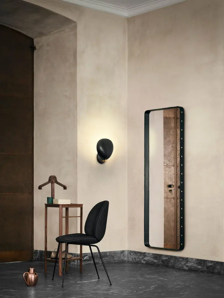 Large Jacques Adnet 'Rectangulaire' Wall Mirror in Tan Leather for GUBI. Originally designed by Jacques Adnet in the 1950s, this incredibly refined mirror is executed in high quality black aniline leather and studded with burnished brass rivets on the edges, a characteristic detailing of the famed French designer's work.Price is per item. Available in unlimited quantities in two sizes and three leather options. Note that Cream leather is only available in the larger size. This listing is for the 'Rectangulaire' wall mirror in tan leather. In-stock lead-time 1-2 weeks. Quick ships from Chicago. Out of stock can take several weeks more. Please note inventory stock can change at any time.French designer Jacques Adnet (1900 - 1984) was an architect and Art Deco Modernist designer and an icon of French Modernism. In 1925, Jacques Adnet was recognized as one of the most promising young designers at both the Salon d'Automne and Les Expositions des Arts Décoratifs. In addition to designing furniture and mirrors, Adnet designed apartments and offices for numerous clients. As a true member of the avant-garde in his time, he was an innovative thinker and original in his choice of form and materials. Adnet remains among the most revered French designers; his work is highly sought after by collectors.Made to order.All sales are final.
