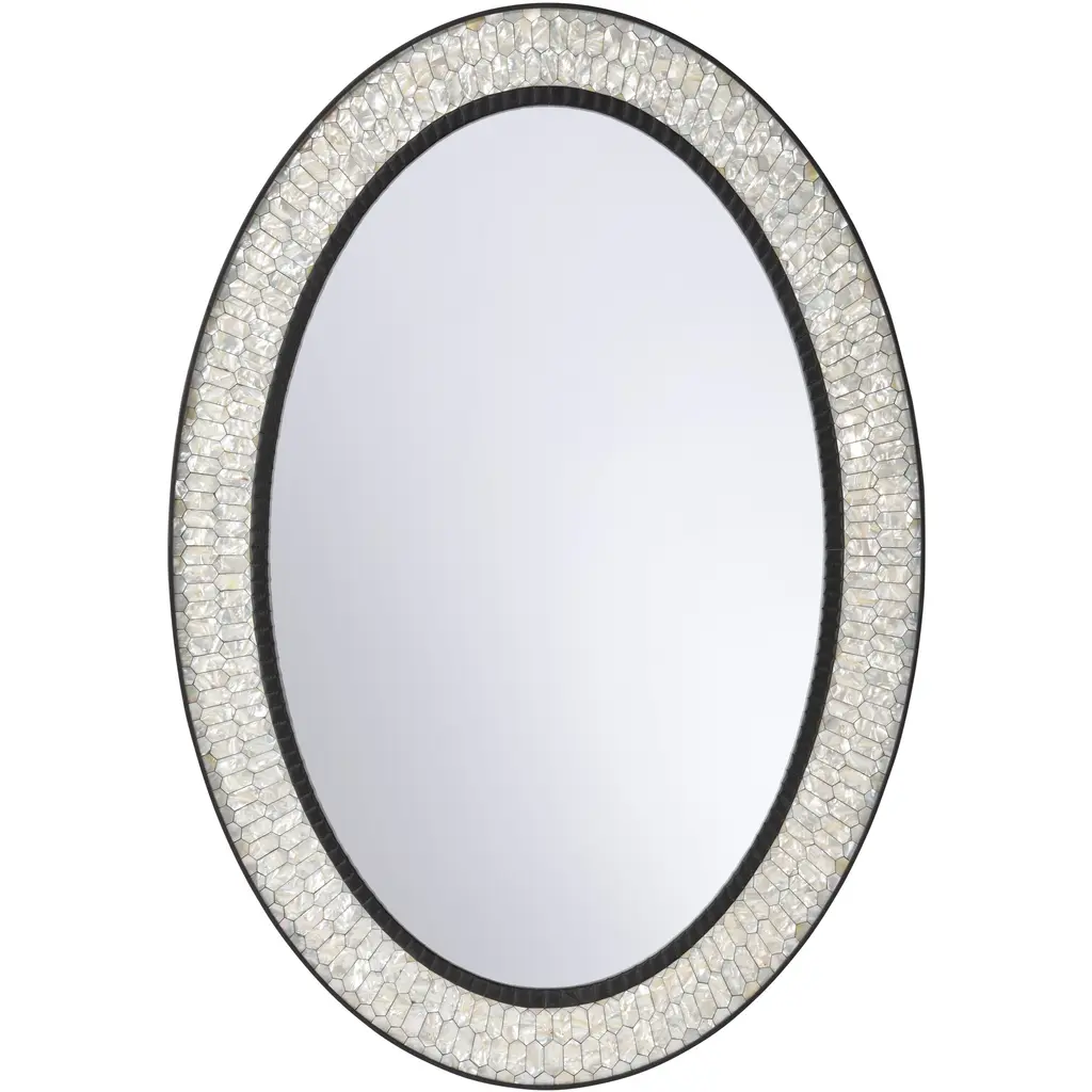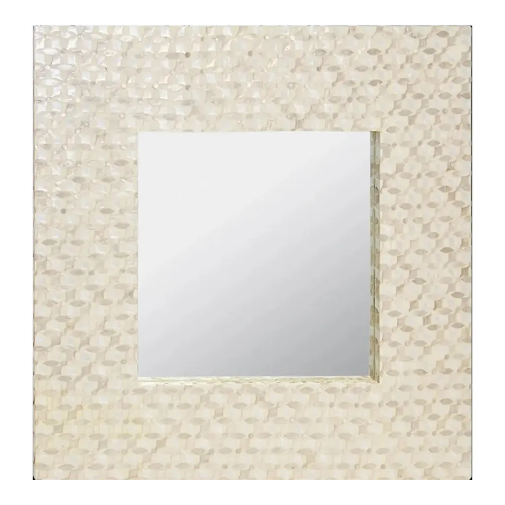 Iridescent mother-of-pearl is cut, arranged and polished by hand to create a stunning accent mirror. Its lustrous cream-colored hues look striking when paired with contemporary furnishings in the entryway, bedroom or living room.