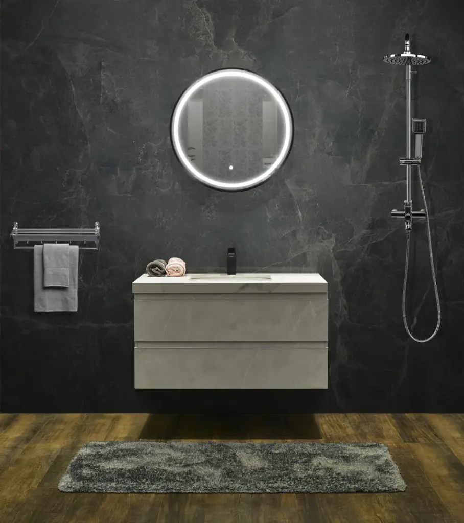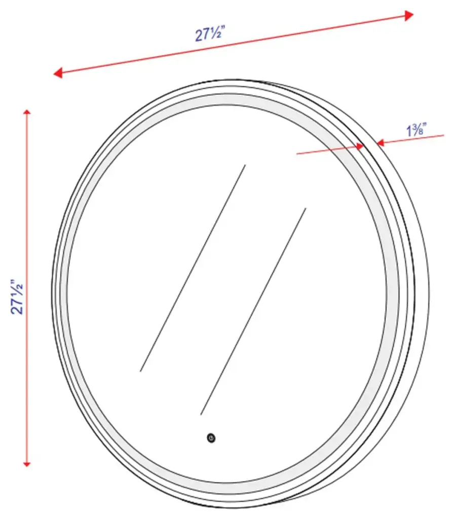 Elevates the decor of your space with this sleek and elegant LED Mirror. The mirror comes with integrated 4000K LED lights that provide excellent visibility and consume low power. Also, its flat design prevents image distortion and reflects visuals accurately. It is designed vertically or horizontally oriented. Our LED mirror comes with a built-in touch sensor switch so you can easily turn on and off. The vanity mirror has a one-year manufacturer''s warranty.Specification:Product type: Wall mirrorDimension: 28 in. W x 1. in D x 28 in. HMount type: Wall-mountedWeight: 14 lb.Color: Black, GoldMaterial: GlassFrame Type: Alu. FrameMirror shape: RoundOrientation: Vertically or HorizontalProduct features: Includes hardwareDensity: 96/mPower/LED: 0.07WPower Consumption: 13.5WTotal Lumen: 1239lmTotal LED length: 1 x 1.84mLumen each LED 7lmColor temperature 4000KLifespan of LED lights 50K hoursLED for each mirror 176 beadsBuilt-in touch sensor switchWarranty: 1 YearCountry of Origin: China