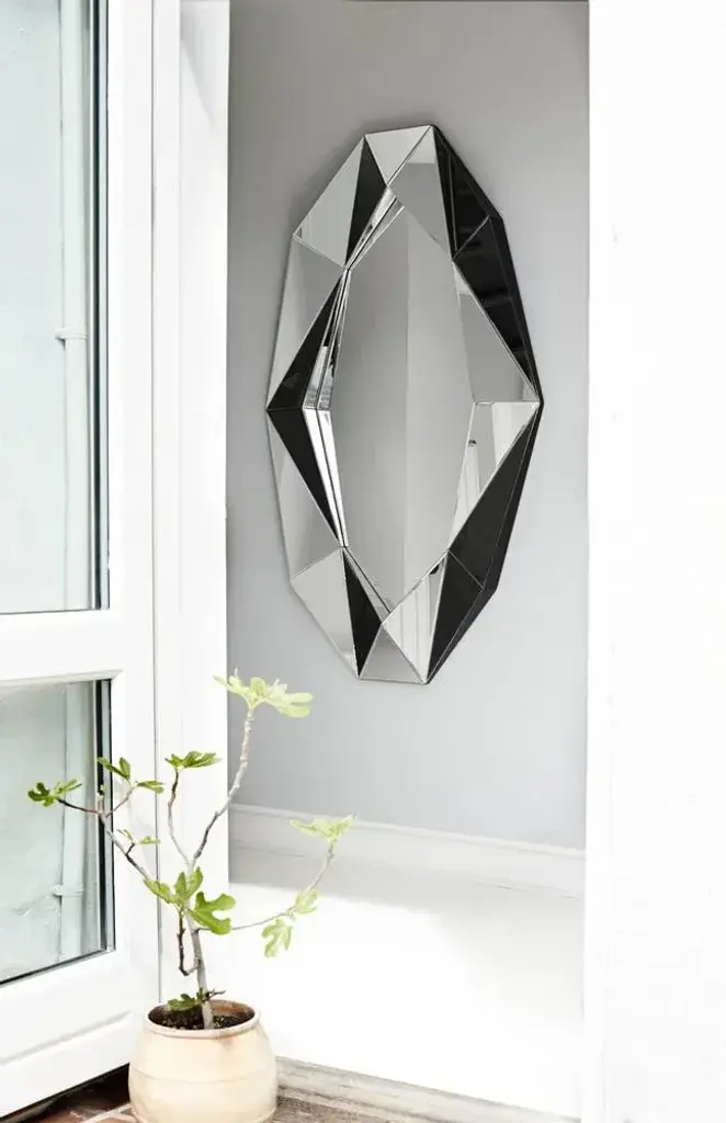 Diamond decorative mirror mirror 4mm faceted mirror on black painted mdf measures: l 82 x h 140 x d 6.7cm the luxury handcrafted diamond mirror large is a dazzling, unique, art deco inspired mirror. It will add the perfect expression of timeless elegance to any interior style. The mirror comes in three different sizes, small, large and xl, making it possible to be used in any room as a classic mirror or a striking decorative design element. Reflections copenhagen, a collection of handmade decorative mirrors and crystal pieces, finely balanced to challenge the traditional styles and shapes of todays’ homes by adding new dimensions and possibilities to interior decorating. Julie hugau and andrea larsson, inspired by the graphic expression of art deco, the vast contrasts of the 1980s and the opportunity to explore the delicate materials that the mirrors are made of, combined their visions and the start of reflections was a fact. The collection sums up their perspectives of how to provide new expressions through strength and form, the mirrors are designed with a strong visual structure to create a contrast of light and reflections through non-traditional mirror images. A concept built on julie’s flair for design and production, andrea’s eye for interior and colors together with their shared vision of creating a product that unites art and decor. Remember, everything in your life is a reflection of a choice you made. If you want a different result, make a different choice welcome to the world of reflections. The beauty of craftsmanship all reflections copenhagen products have been individually hand produced with unique artisan techniques. All the irregularities and inconsistencies that you may find are part of its unique handcrafted character and beauty. “we feel very privileged to be able to do exactly what we want to and to work with each other; the exchange of energy and creative ideas is constant and what drives the brand forward” julie hugau & andrea larsson. This piece is attributed to the mentioned designer/maker. It has no attribution mark and no official proof of authenticity, however it is well documented in design history. I take full responsibility for any authenticity issues arising from misattribution