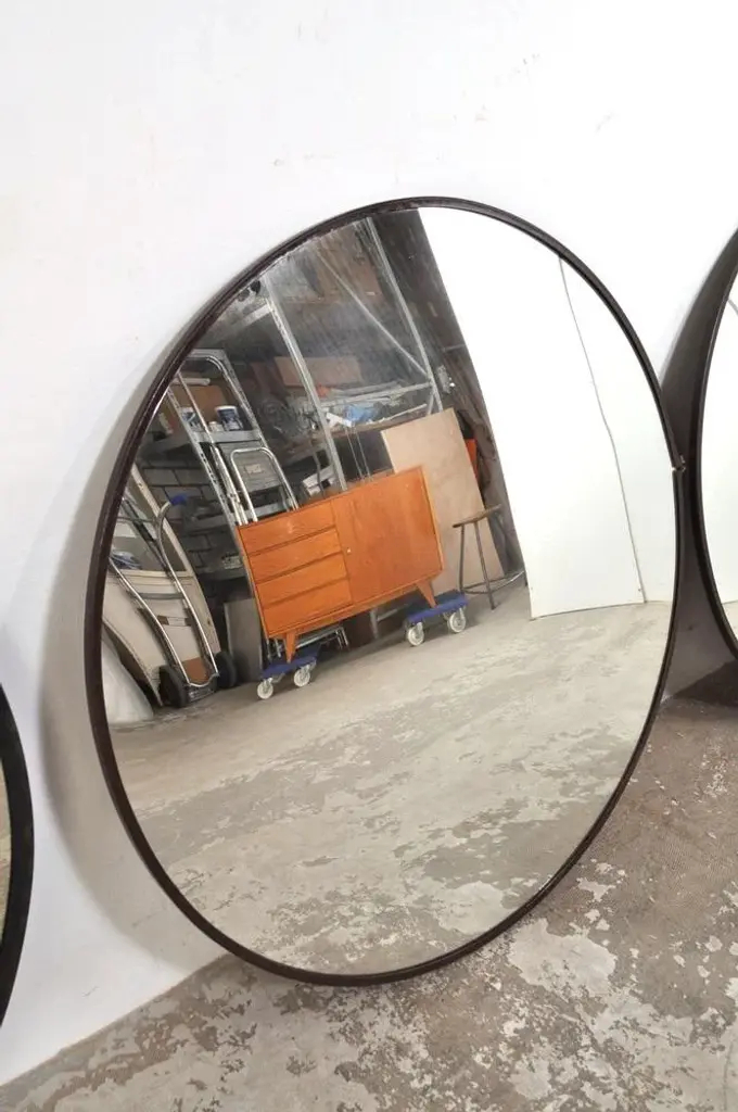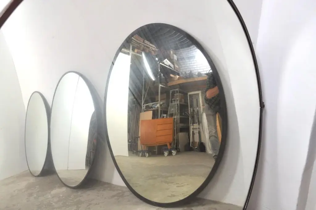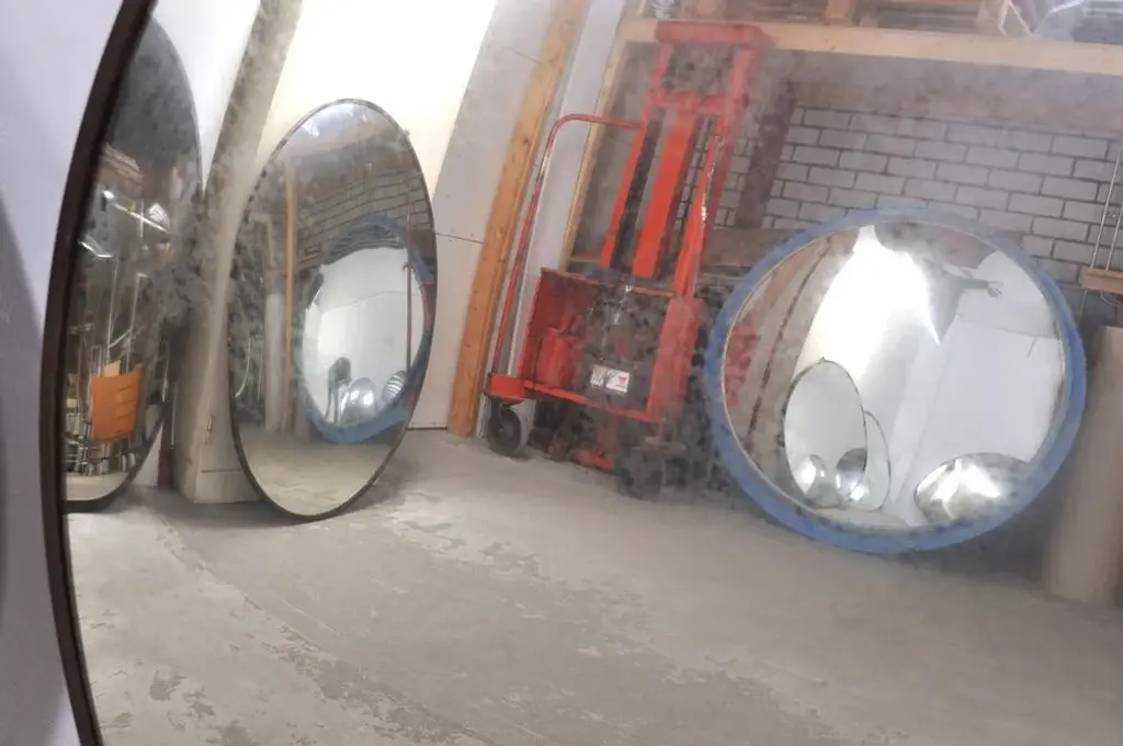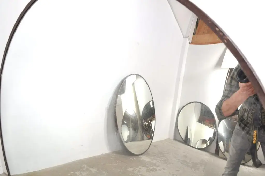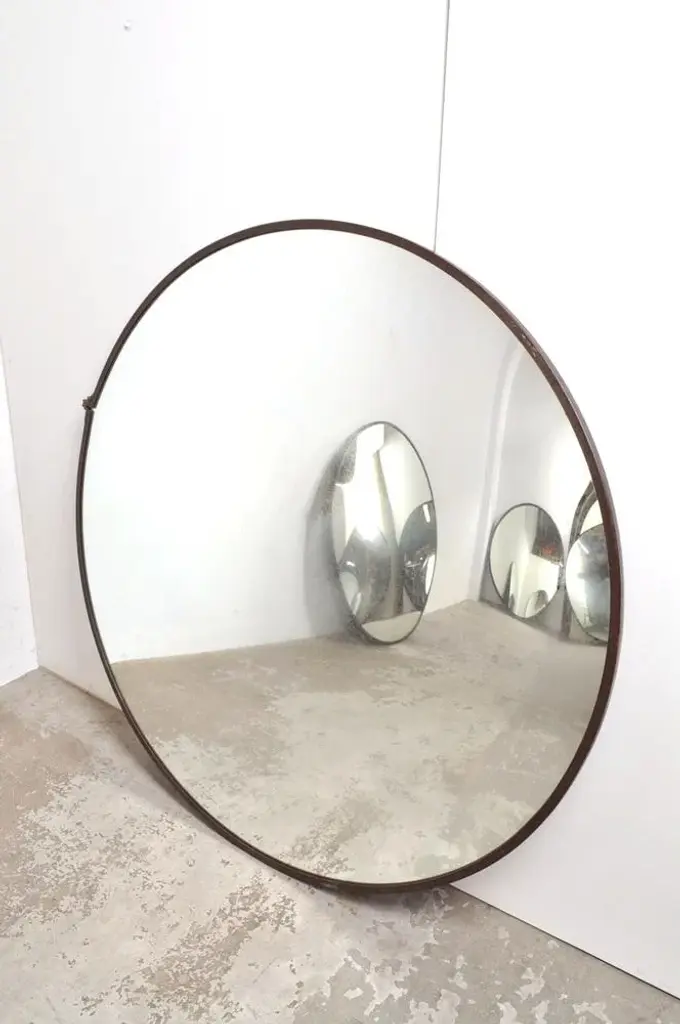 These large convex mirrors are becoming increasingly scarce, but we were able to buy a nice lot! These mirrors are used in a Czech factory to keep a good overview of the workers and safety. The mirror glass is beautifully weathered and that is exactly the look it should have! Still practical for a shop, but also an eye-catcher in your catering business or home, for example. Also a very cool effect on the ceiling! Dimensions: diameter 121 cm / D5 cm
